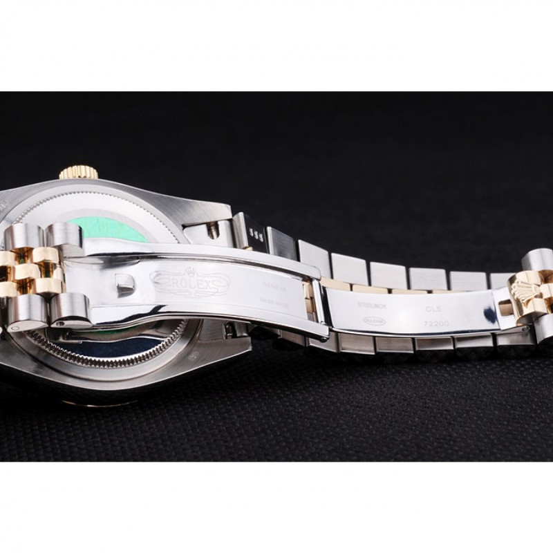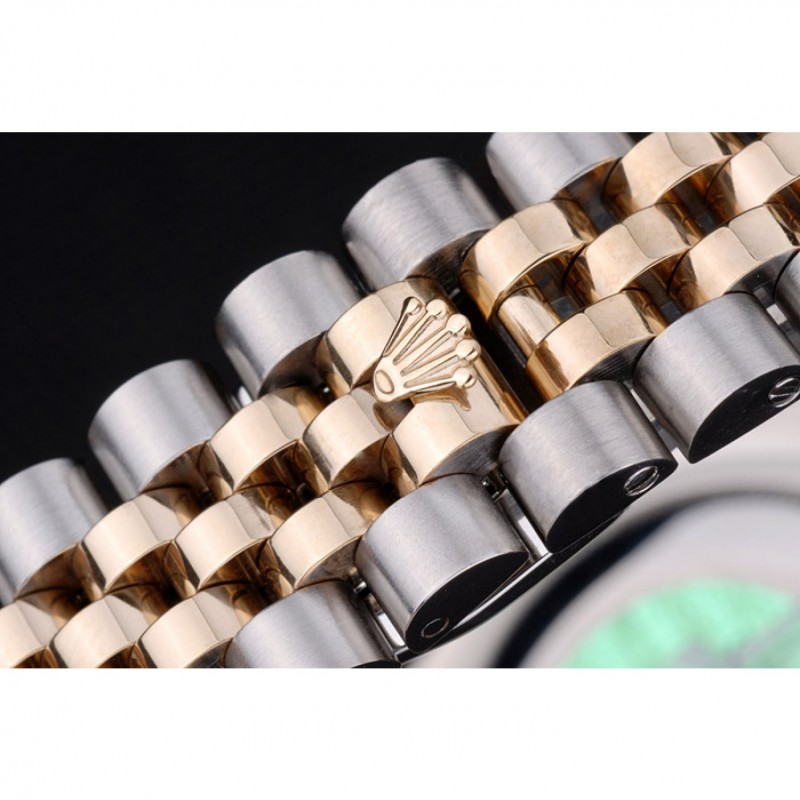 pulsera: Dos tonificado brazalete de eslabones en acero inoxidable cepillado y oro amarillo de 18K chapado en acero con el grabado Rolex cierre oculto que muestra el logotipo de Rolex
