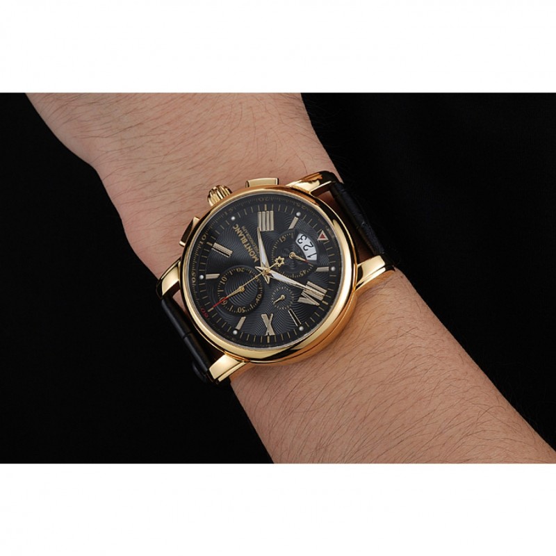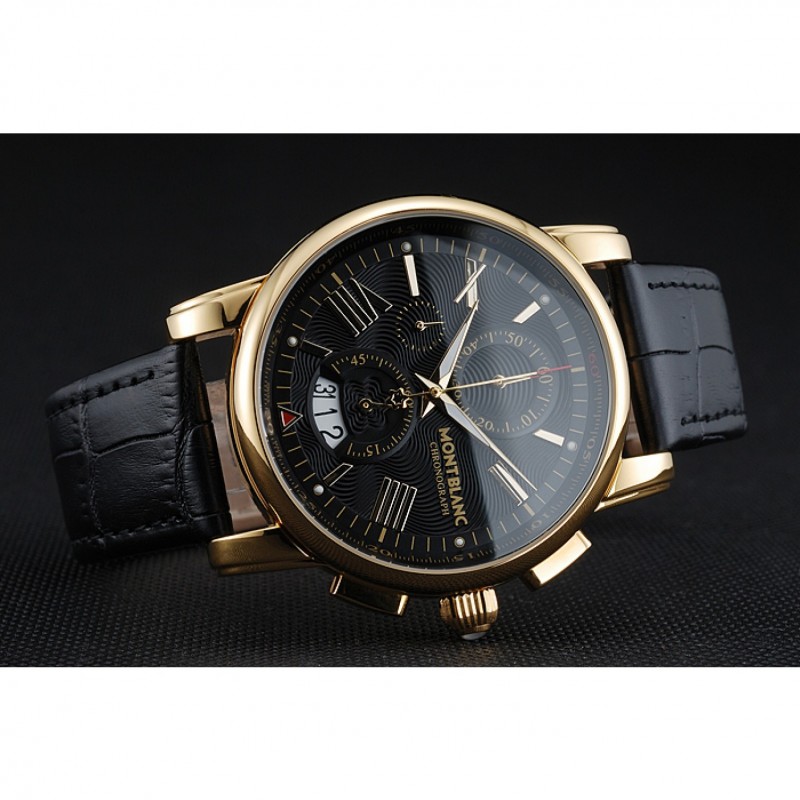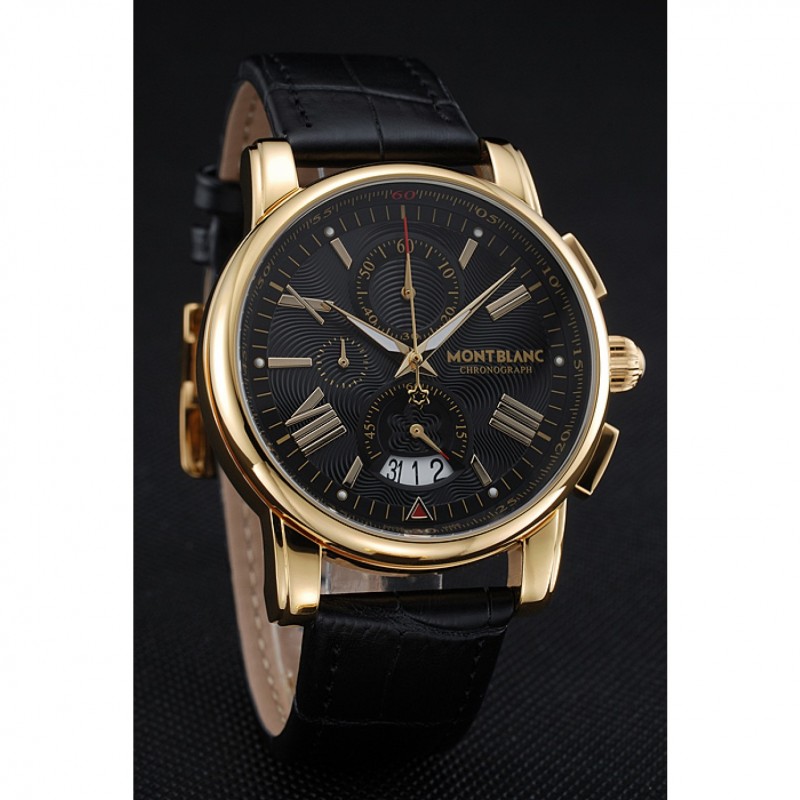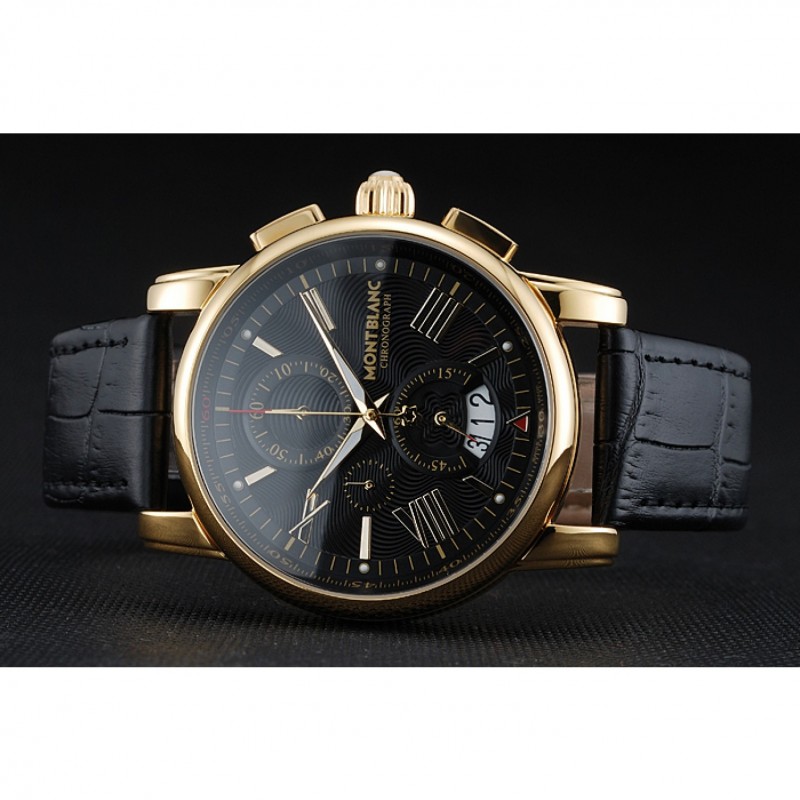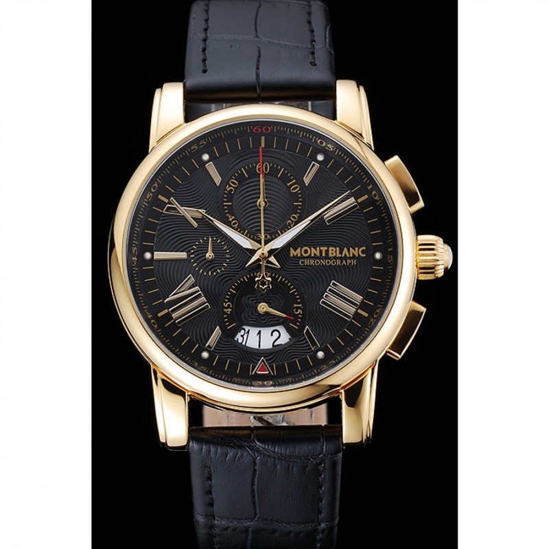 Dial cronógrafo Montblanc Negro Cuero Negro Caja de oro pulsera 1454112