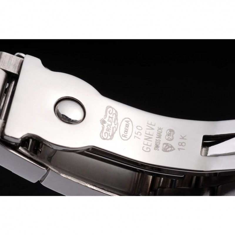 pulsera: cepillado y pulido brazalete de eslabones de acero inoxidable con Rolex grabado hebilla de despliegue que muestra el logotipo de Rolex
