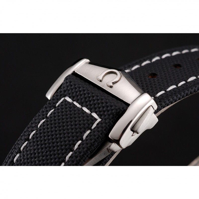 pulsera:logo y el calor Omega en relieve con costuras de hilo blanco y el logotipo de Omega tallada de acero inoxidable pulido gancho de liberación empuje del corchete