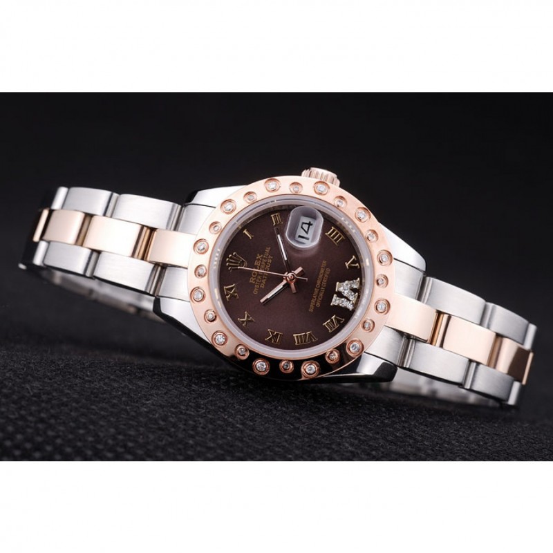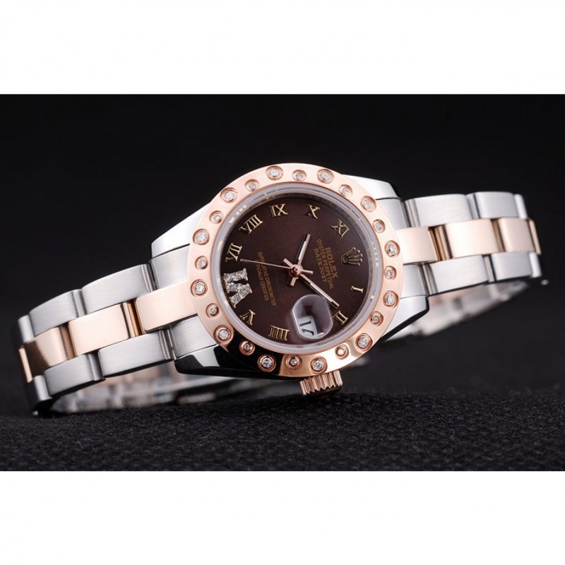 Gama alta Los diamantes de Louis Vuitton Rose oro pulido Bisel Brown Dial 7475