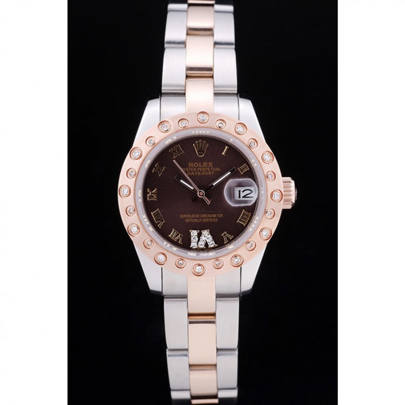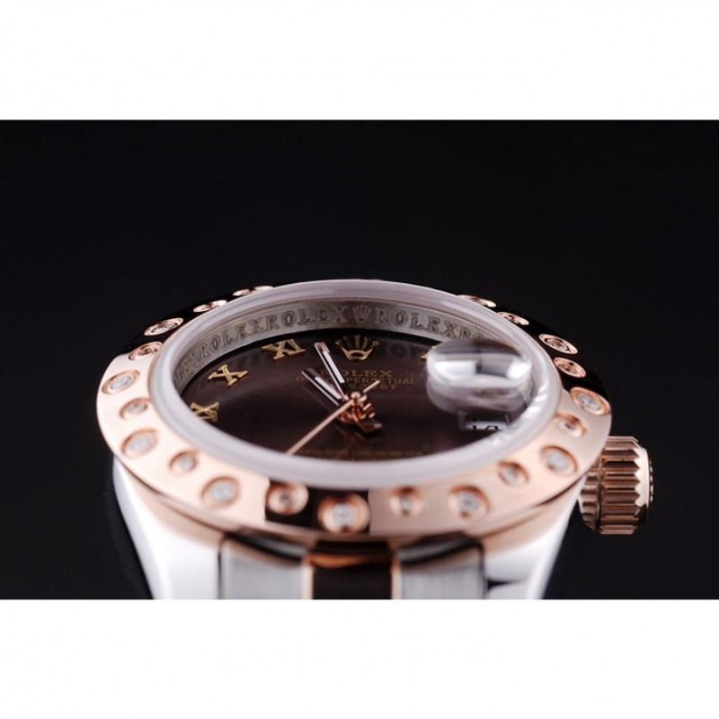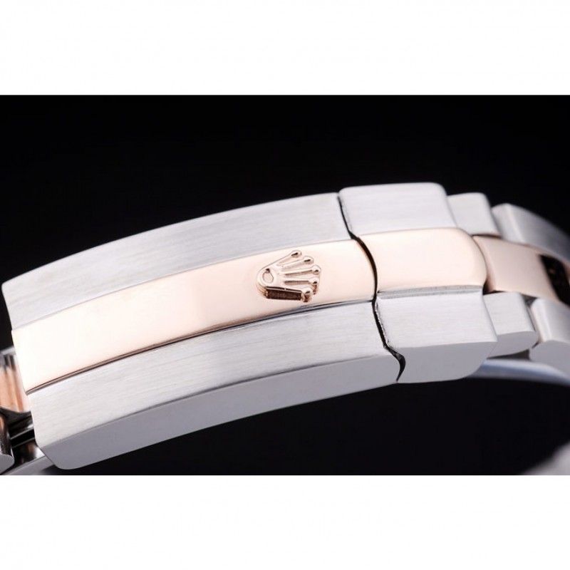 Crown: 18K rose-chapado en oro corona cutwork con Rolex logo grabado