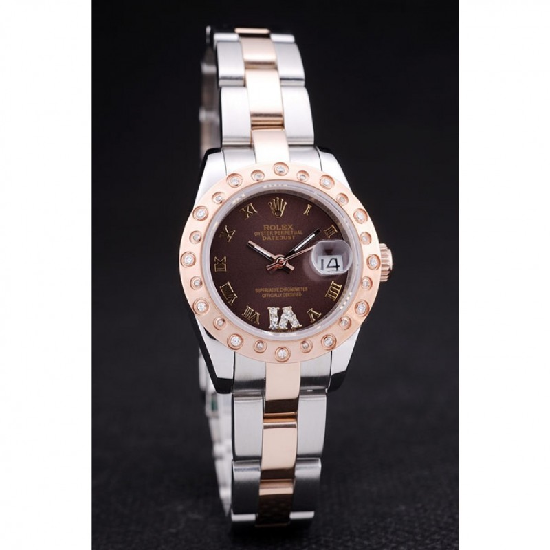 Corona: Rosa de 18 quilates chapado en oro de la corona calado con Rolex logo grabado