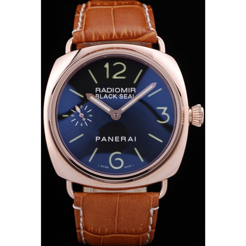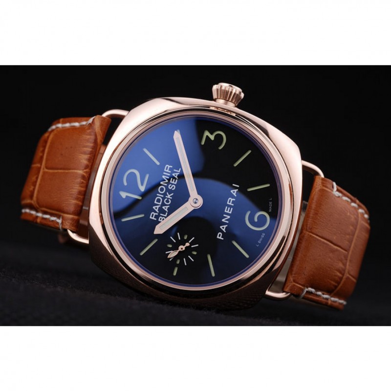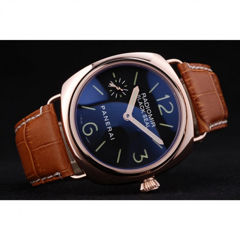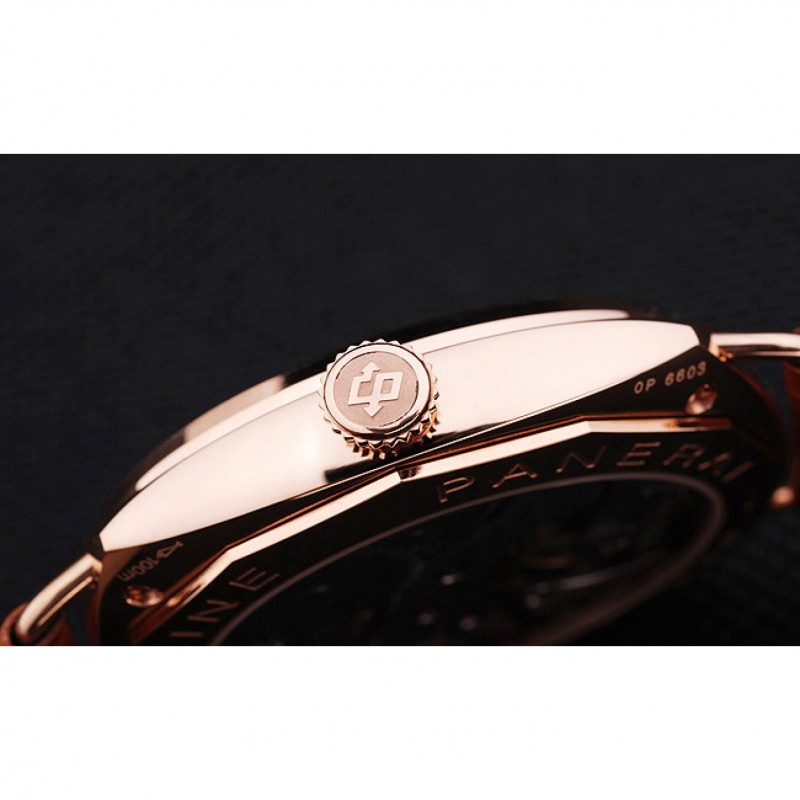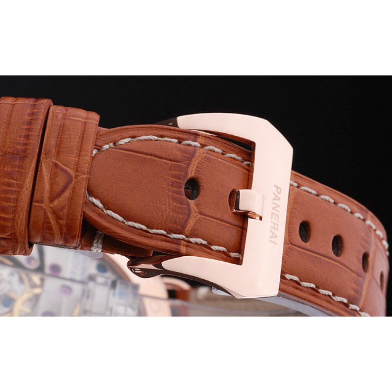 Gama alta Panerai Negro Sello Negro Dial pulsera de cuero de la caja de oro rosa Brown