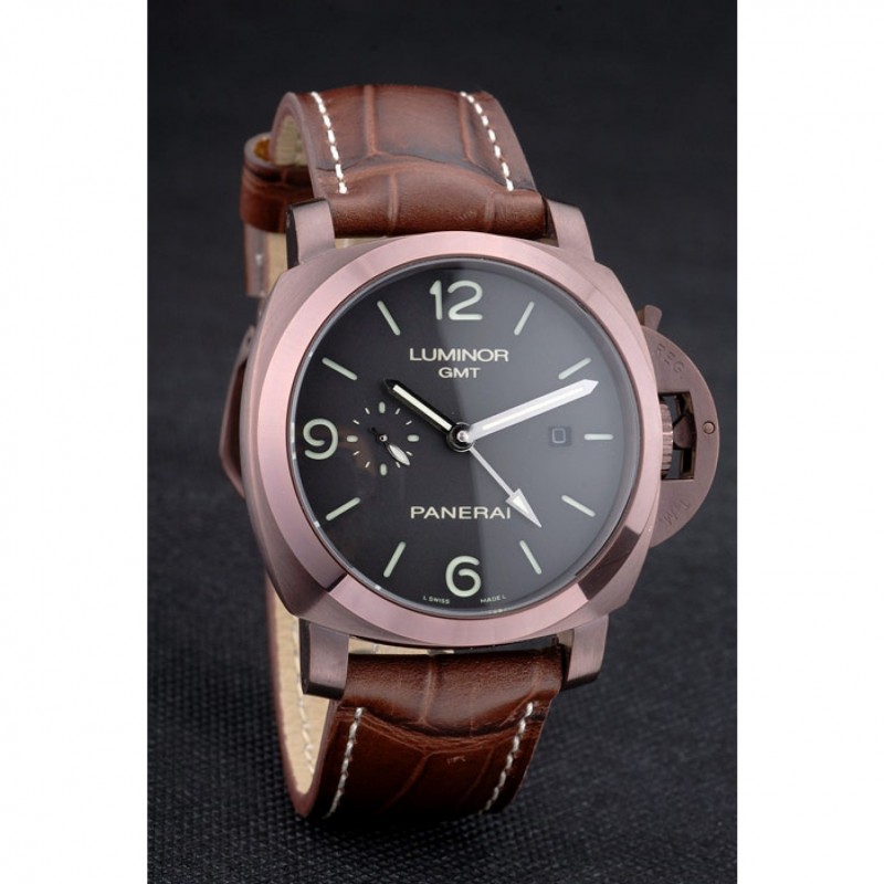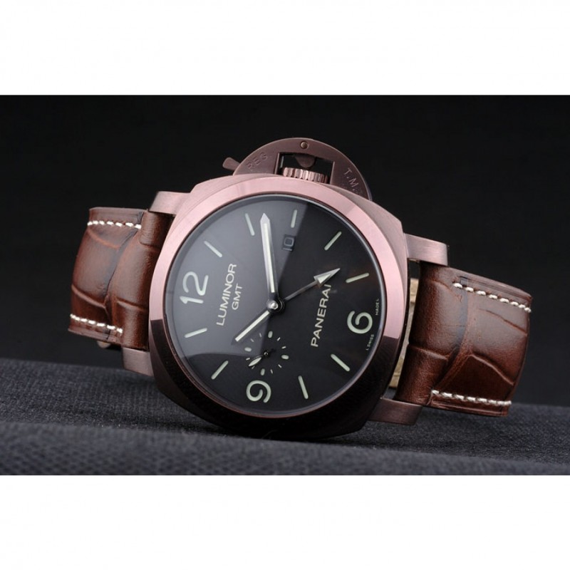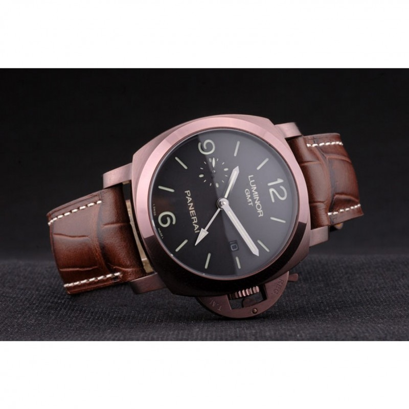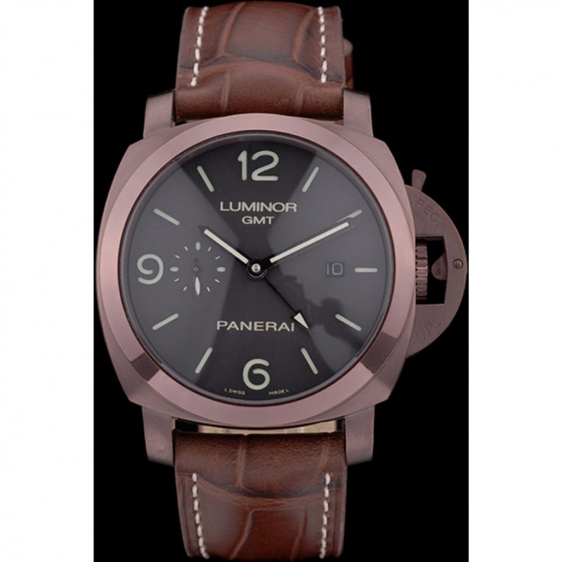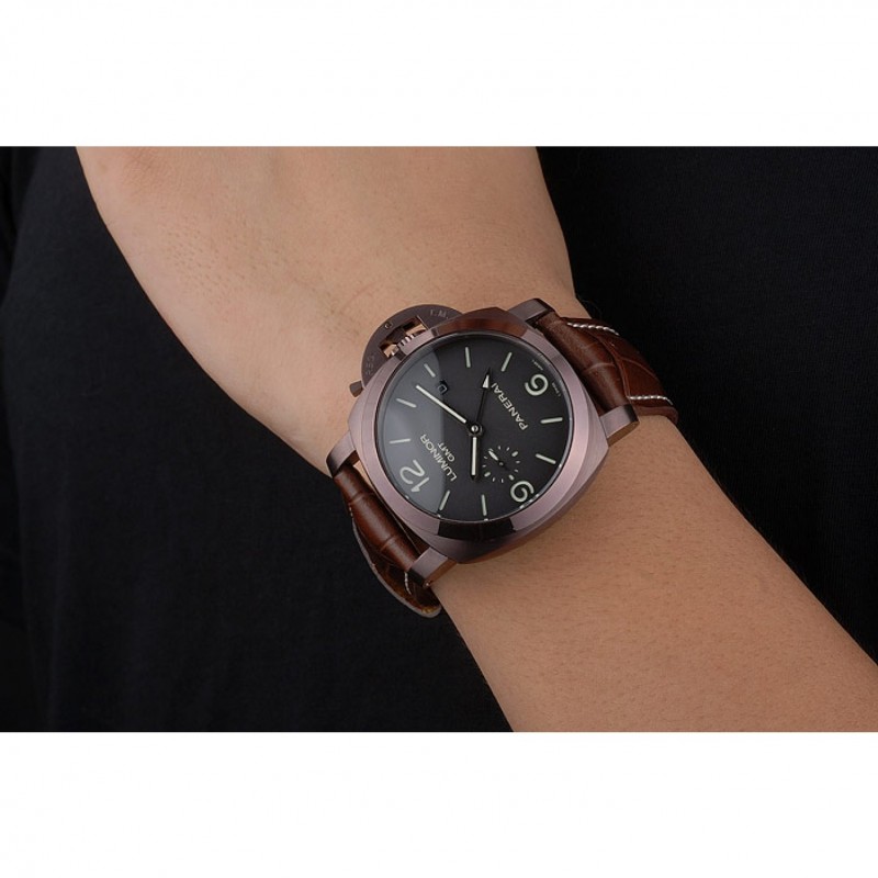 Gama alta Réplicas Relojes Piel Panerai Luminor Brown Correa Negro Dial 80160