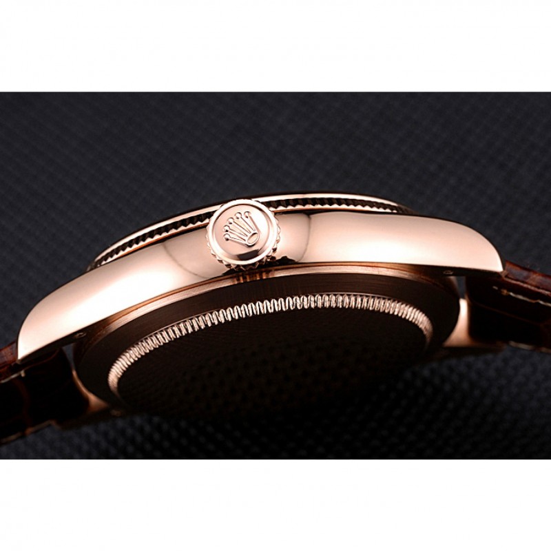 pulsera: logotipo y correa de cuero Rolex de calor en relieve de cocodrilo marrón con Rolex logo 18k tallado de oro rosa plateado broche de gancho hebilla