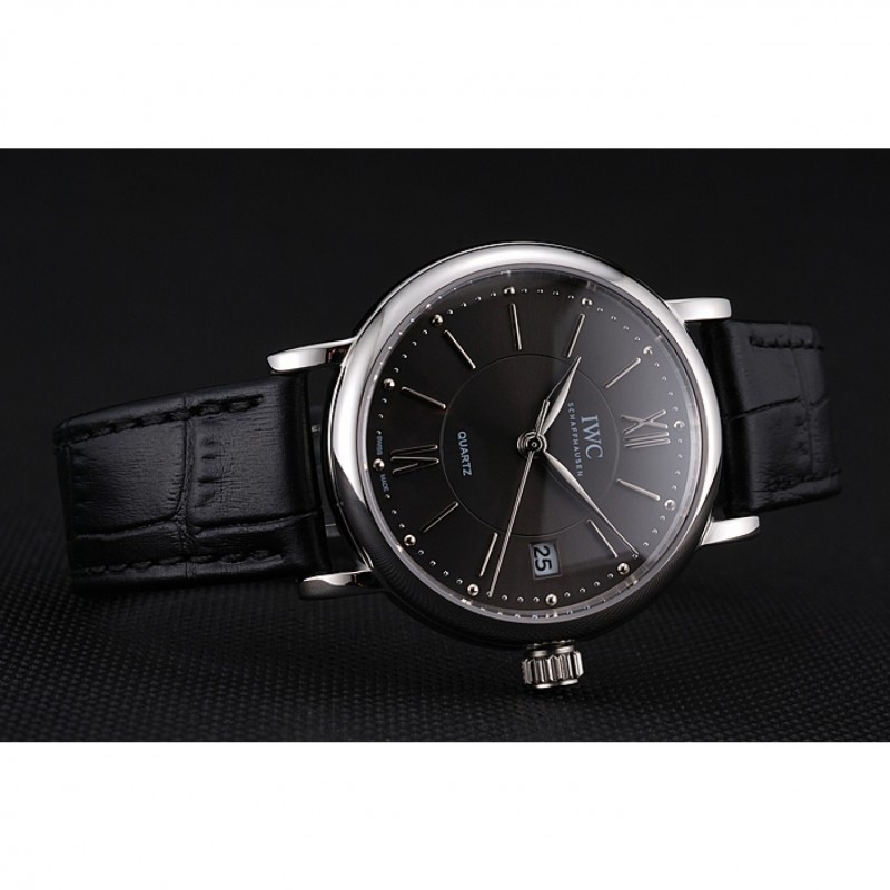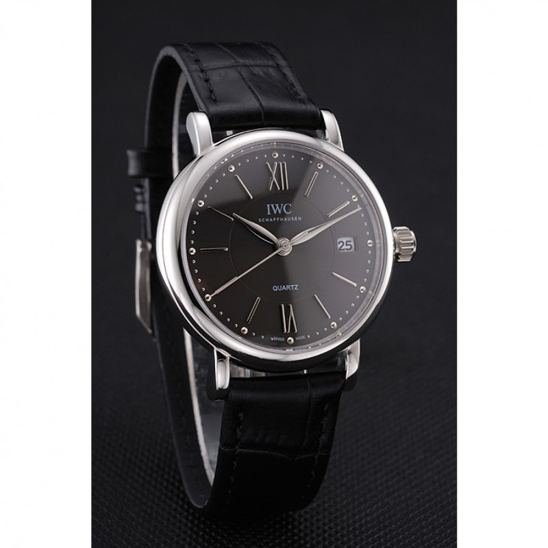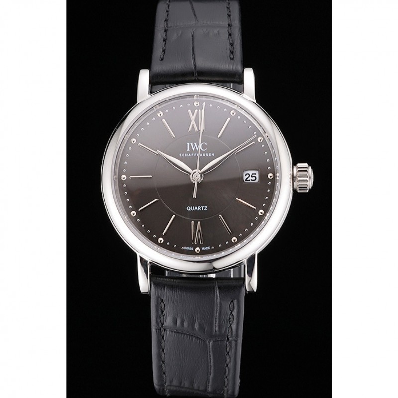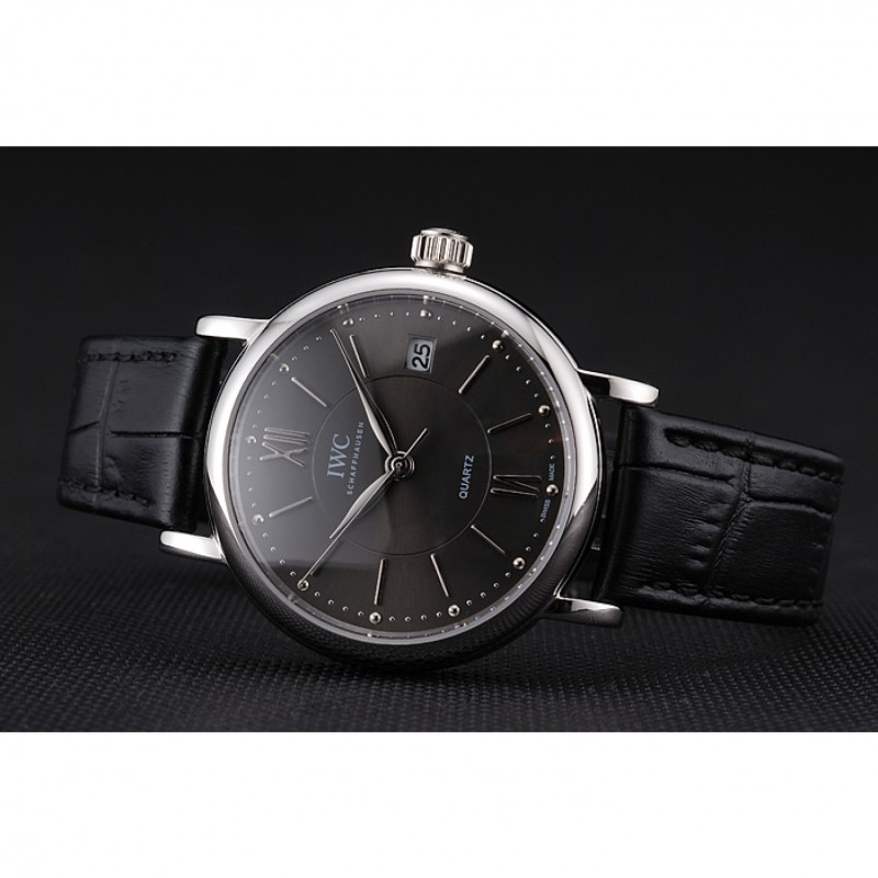 IWC Portofino Gris oscuro Dial correa de cuero caja de acero inoxidable Negro