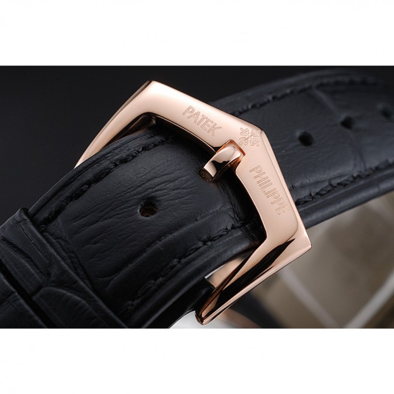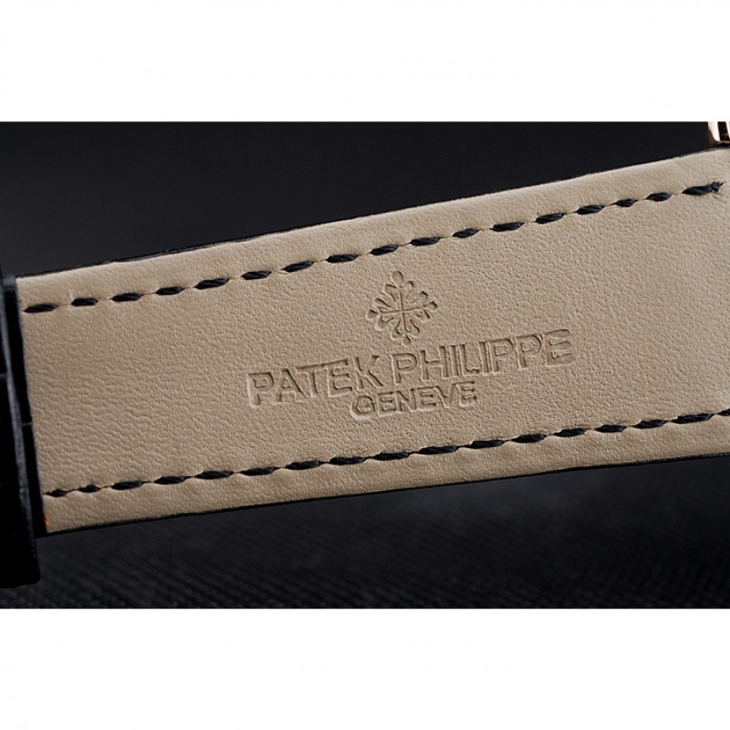 pulsera: logo y el calor Patek Philippe en relieve correa de piel de cocodrilo negro con el logotipo y Patek Philippe grabados rosa de 18 quilates chapado en oro gancho hebilla de cierre