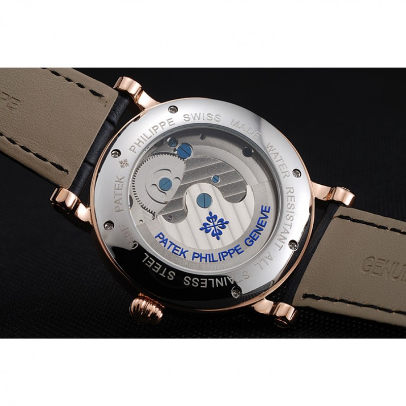 Volver: atornillado acero inoxidable pulido de vuelta con transparentes mecánica-revelando atrás y Patek Philippe Geneve grabado