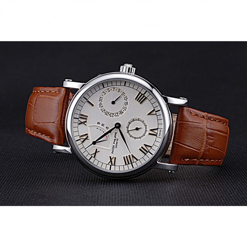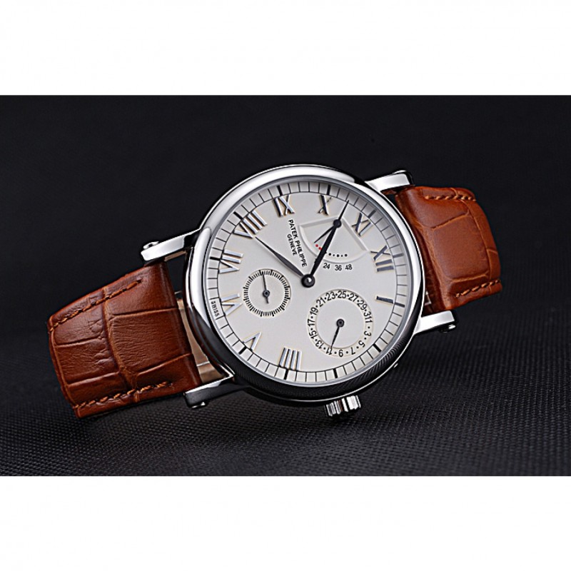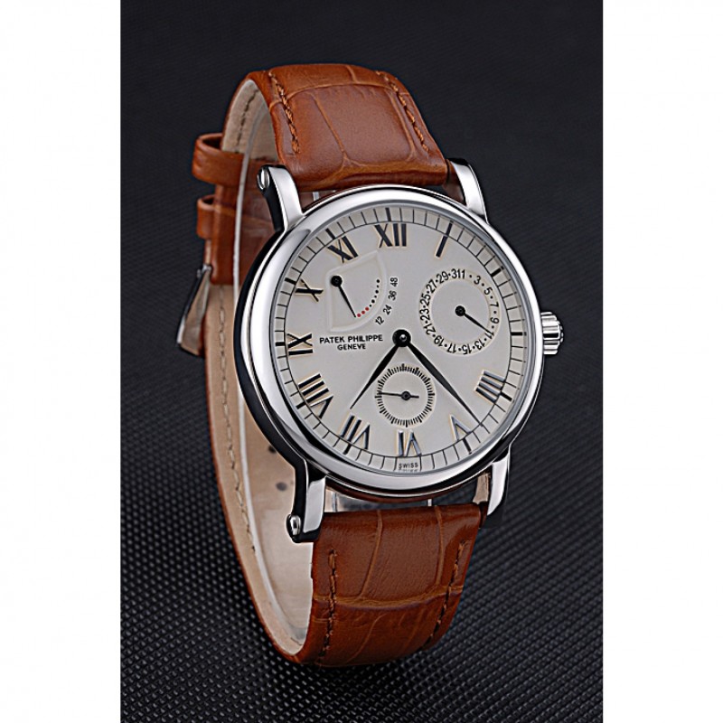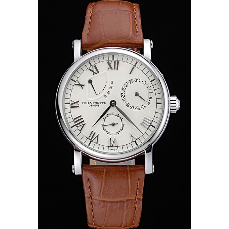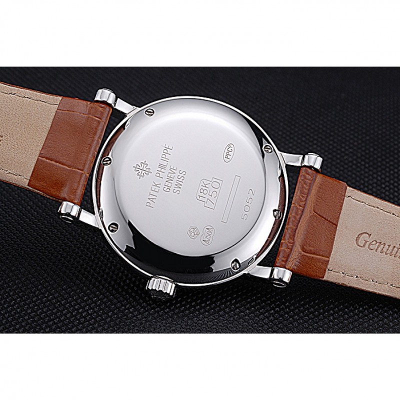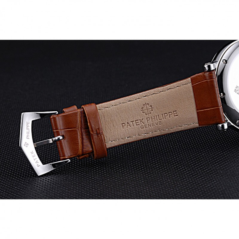 Las complicaciones Patek Philippe Geneve esfera blanca de acero inoxidable Brown banda de cuero 622142
