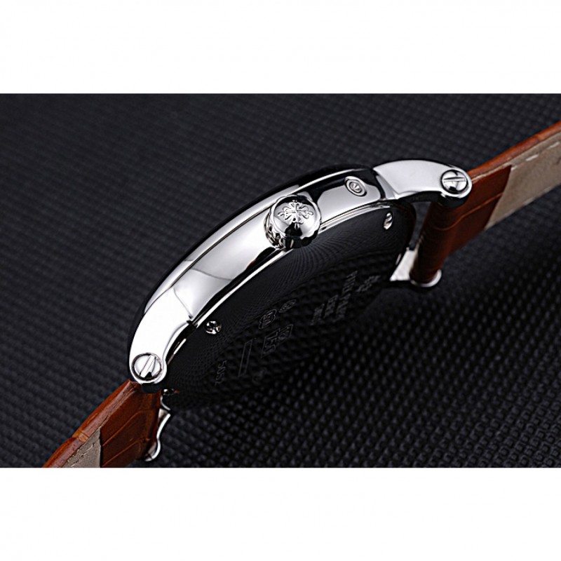 pulsera:piel de cocodrilo marrónlogo y el calor Patek Philippe Geneve en relieve correa con Patek Philippe inscrito pulida de acero inoxidable gancho hebilla de cierre