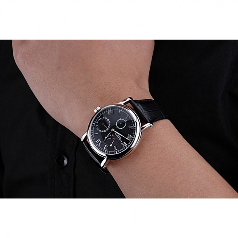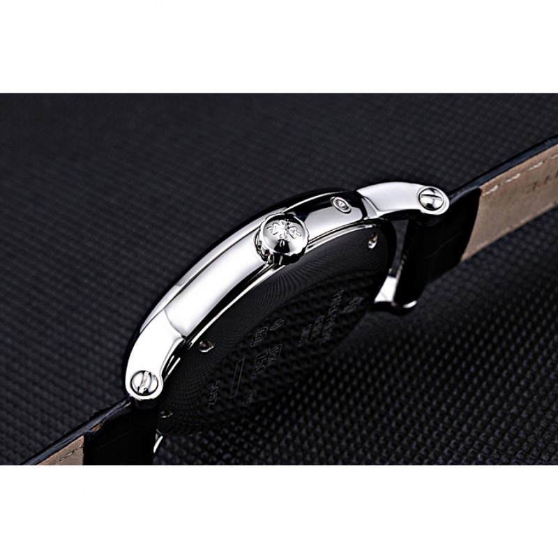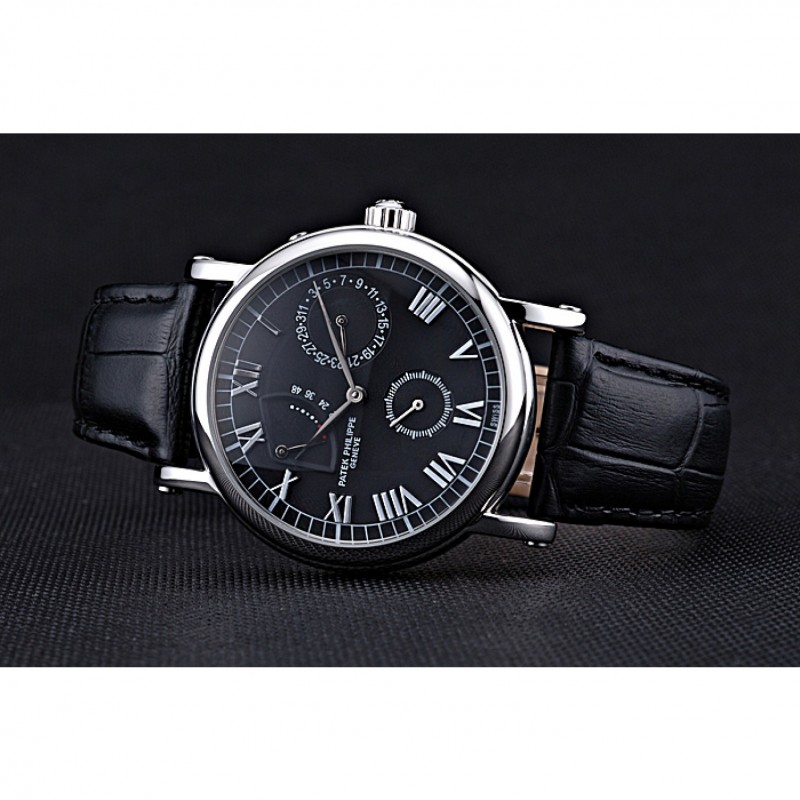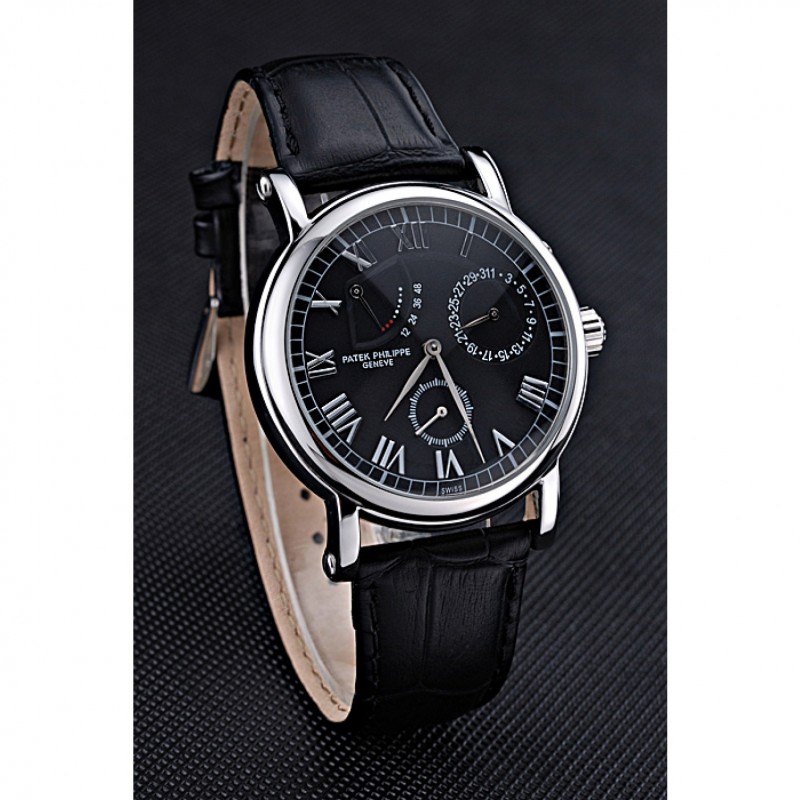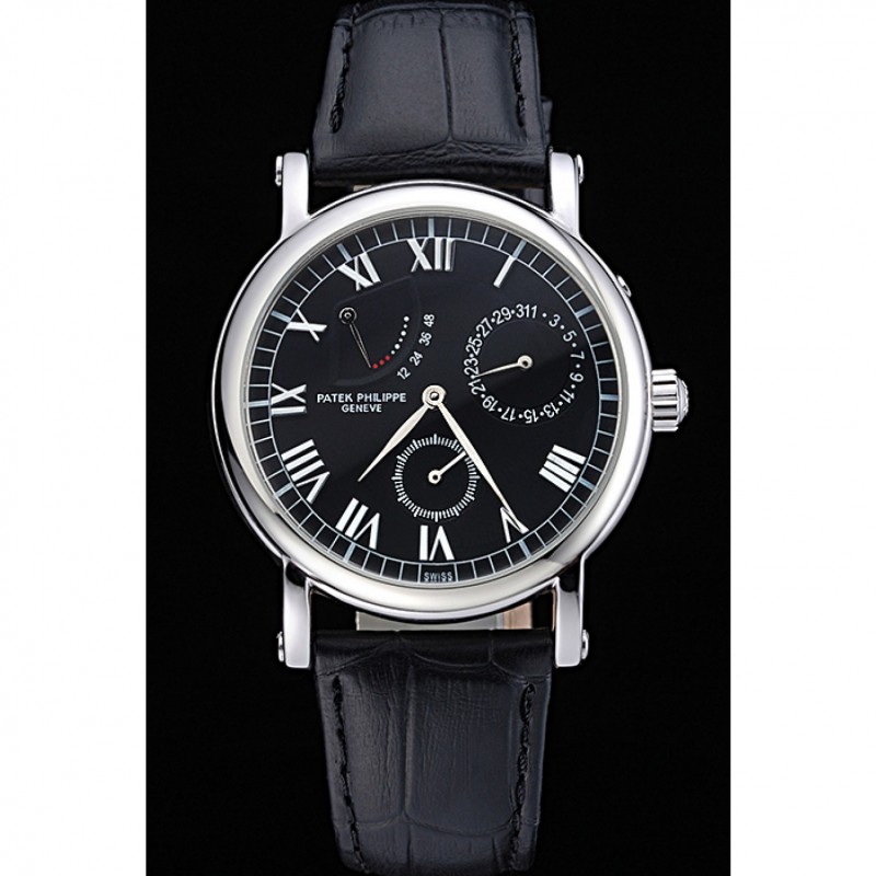 Las complicaciones Patek Philippe Geneve Negro Dial acero inoxidable Bisel Negro banda de cuero 622141