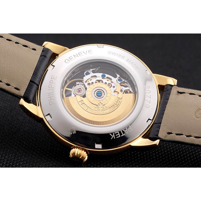 Volver: Mecánica-revelando transparente centro de acero inoxidable pulido complemento con grabados Patek Philippe