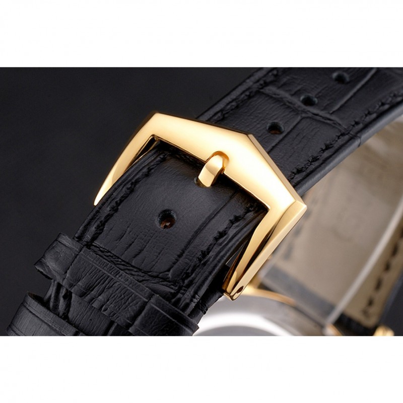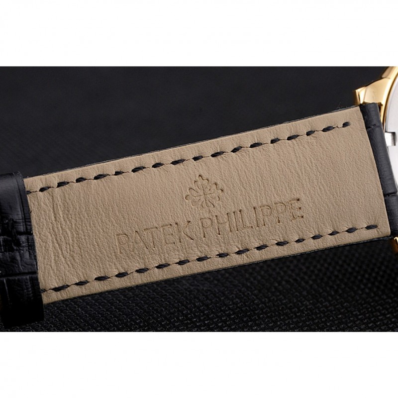 pulsera: Patek Philippe y correa de piel de cocodrilo negro en relieve el logo característico de 18 quilates en oro amarillo plateado gancho hebilla de cierre