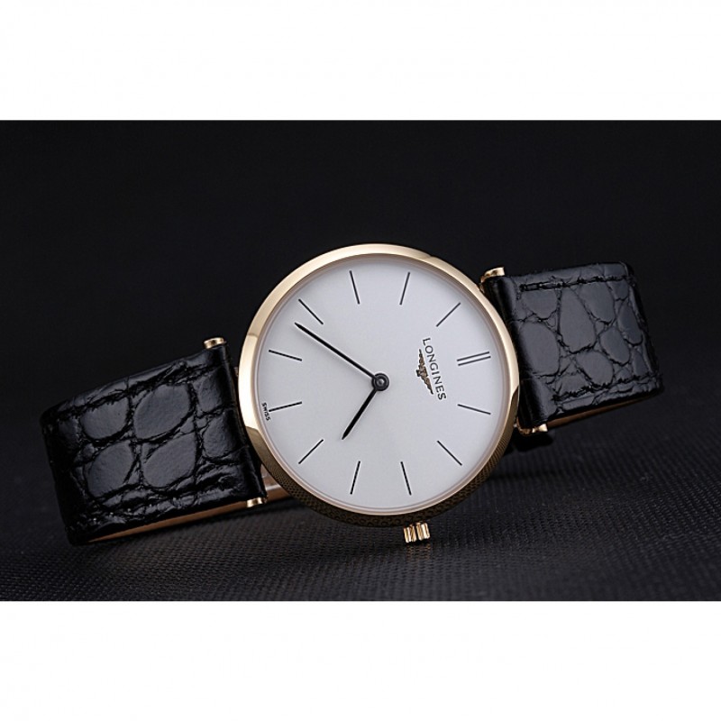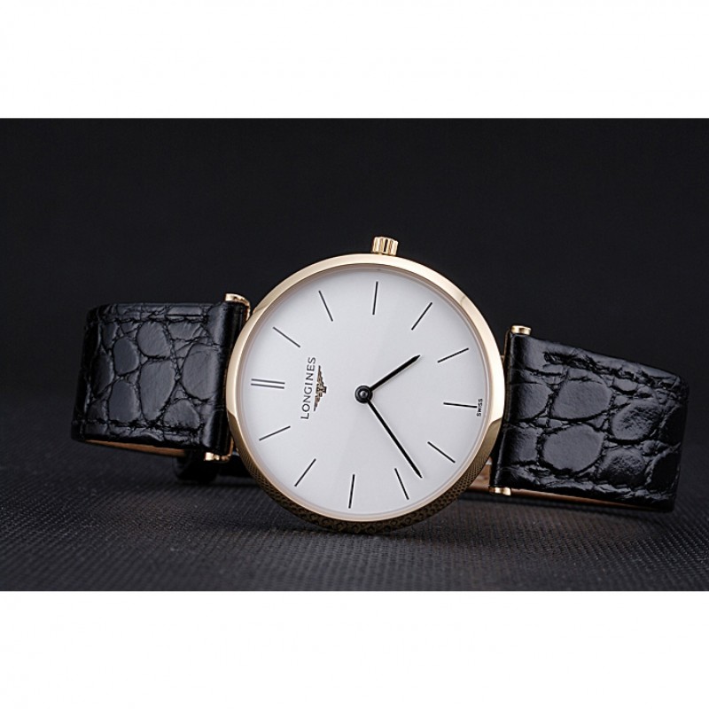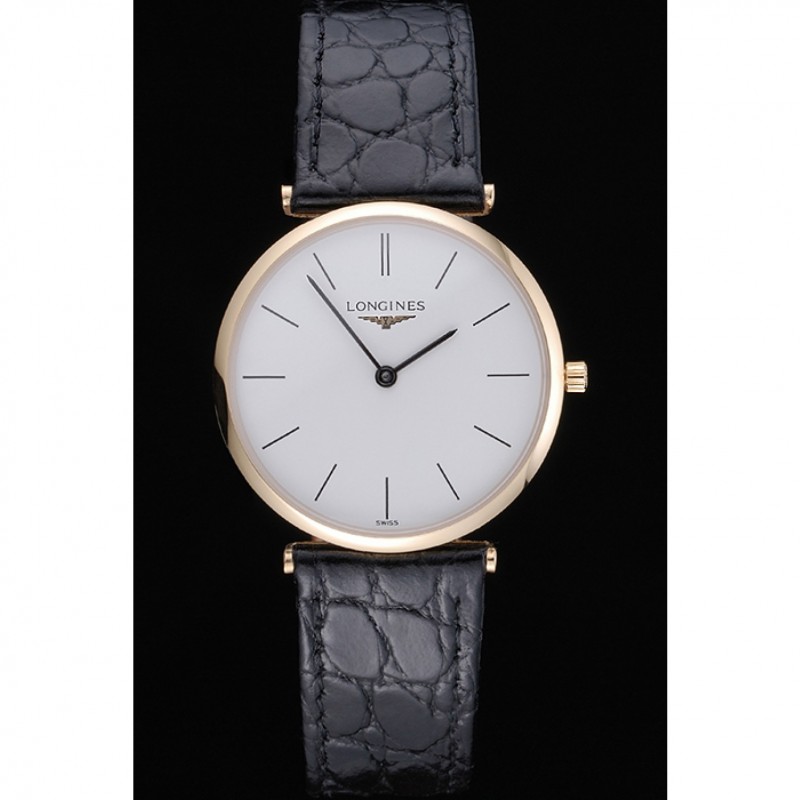 Longines La Grande Classique esfera blanca correa de cuero Negro Homme 622115