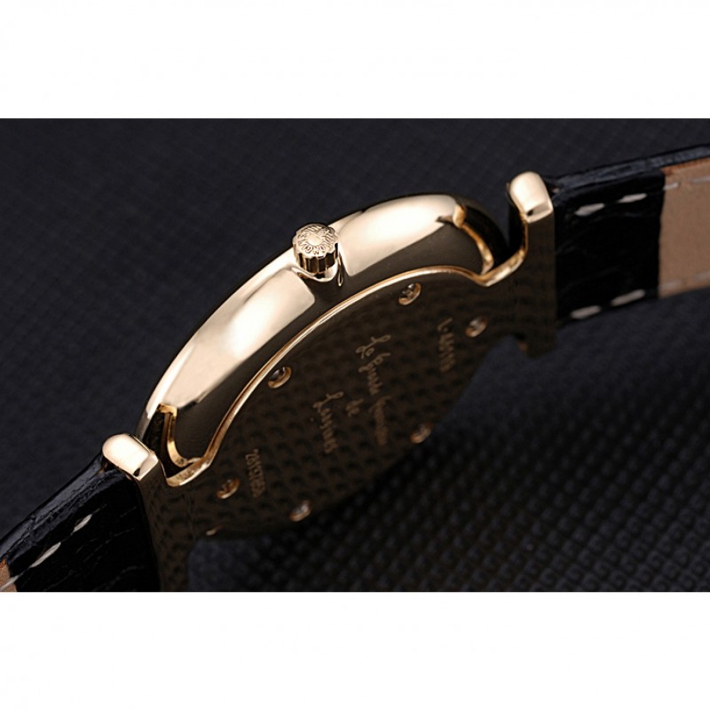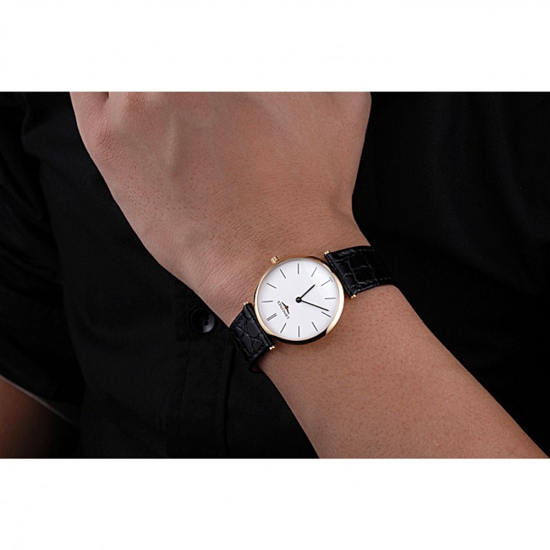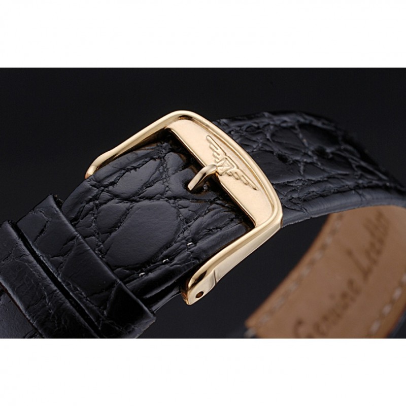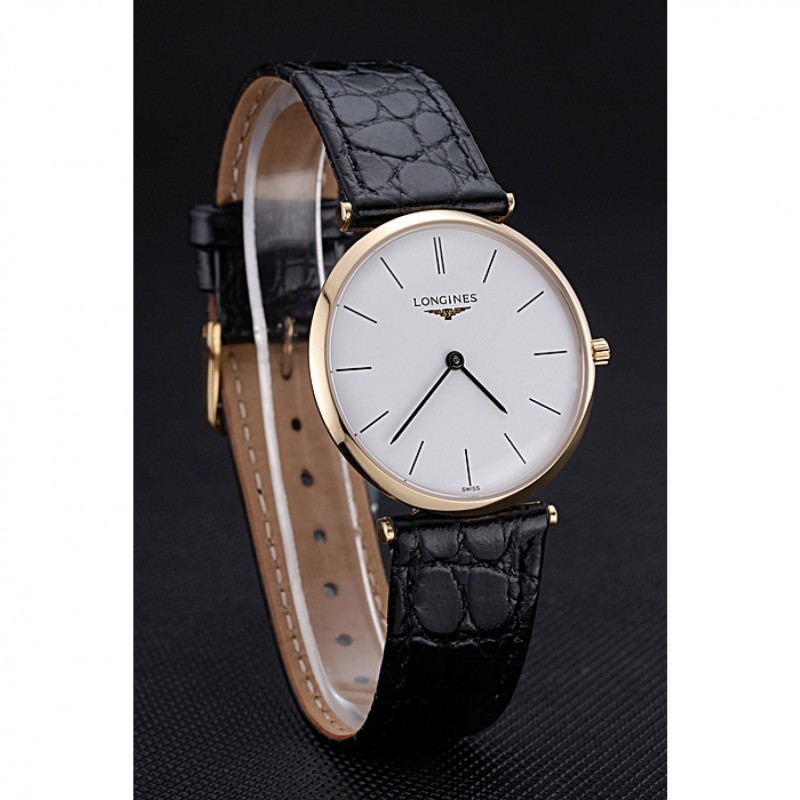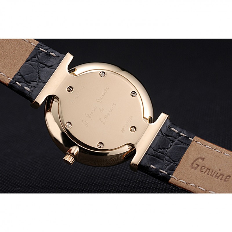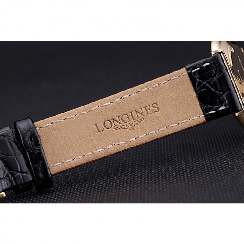 pulsera chapado:piel de cocodrilo negrocalor Longines en relieve correa con el logotipo grabado 18k oro amarillo plateado gancho hebilla de cierre