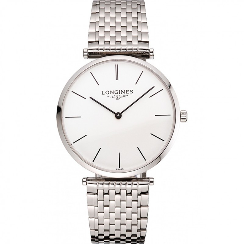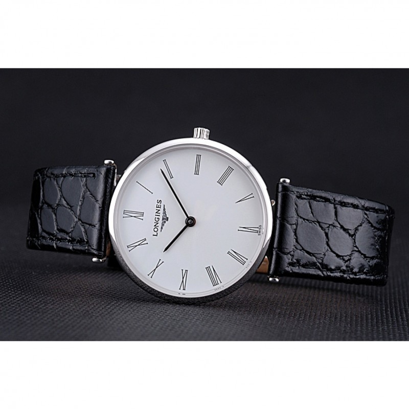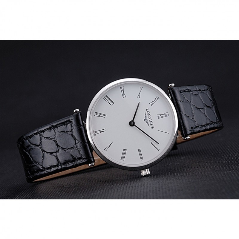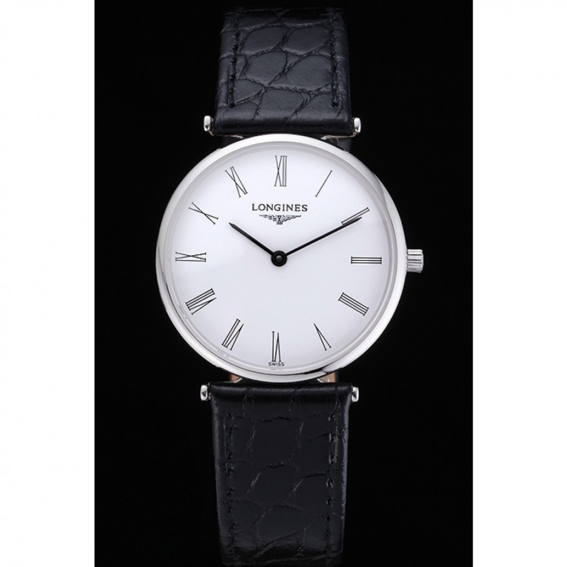 Longines La Grande Classique esfera blanca Negro banda de cuero Homme 622127