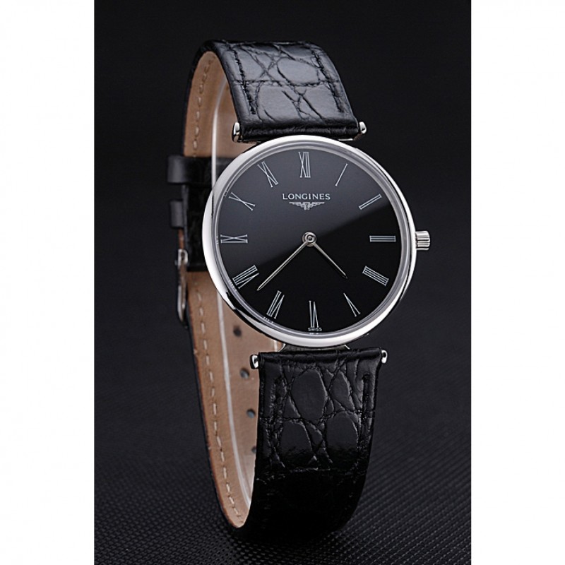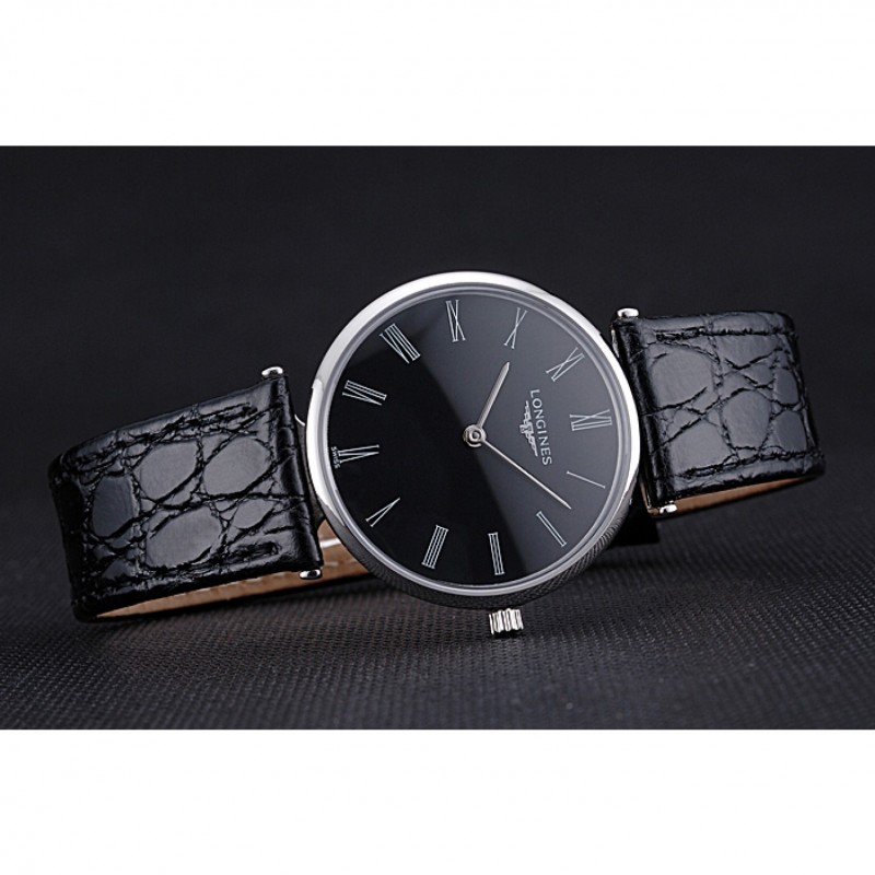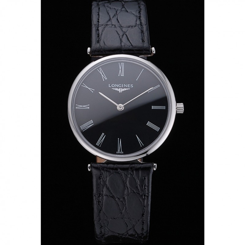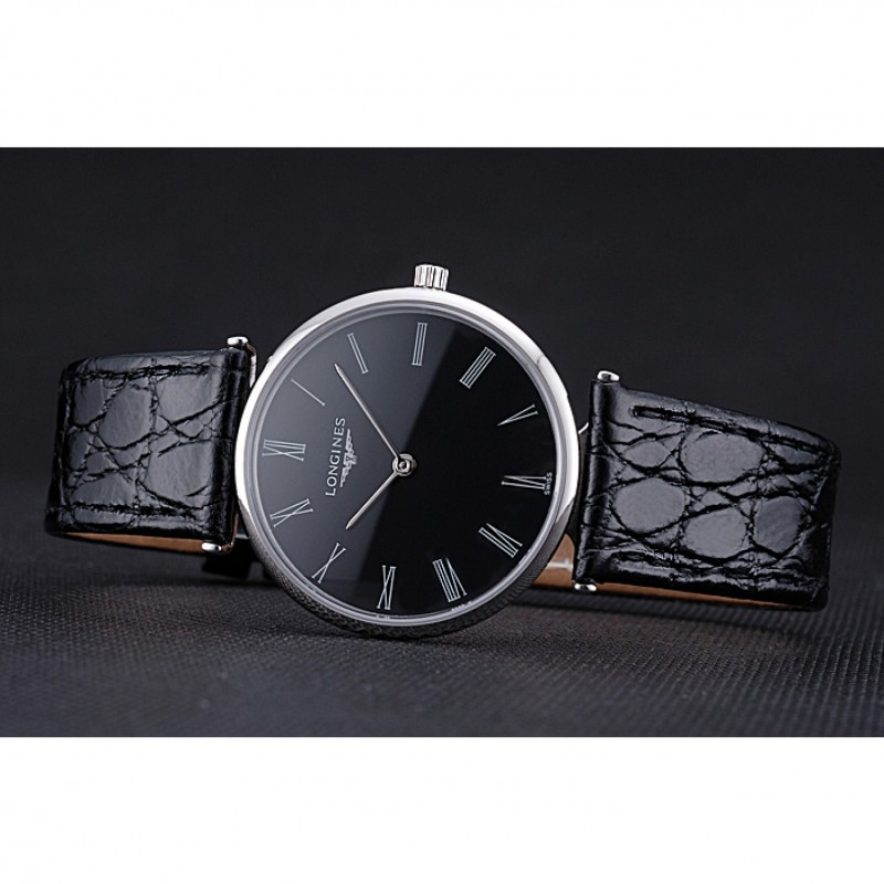 Longines La Grande Classique Negro Dial Negro banda de cuero Homme 622131