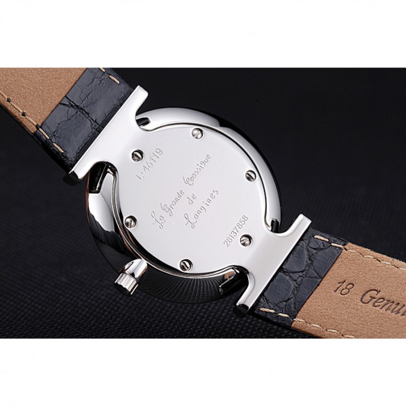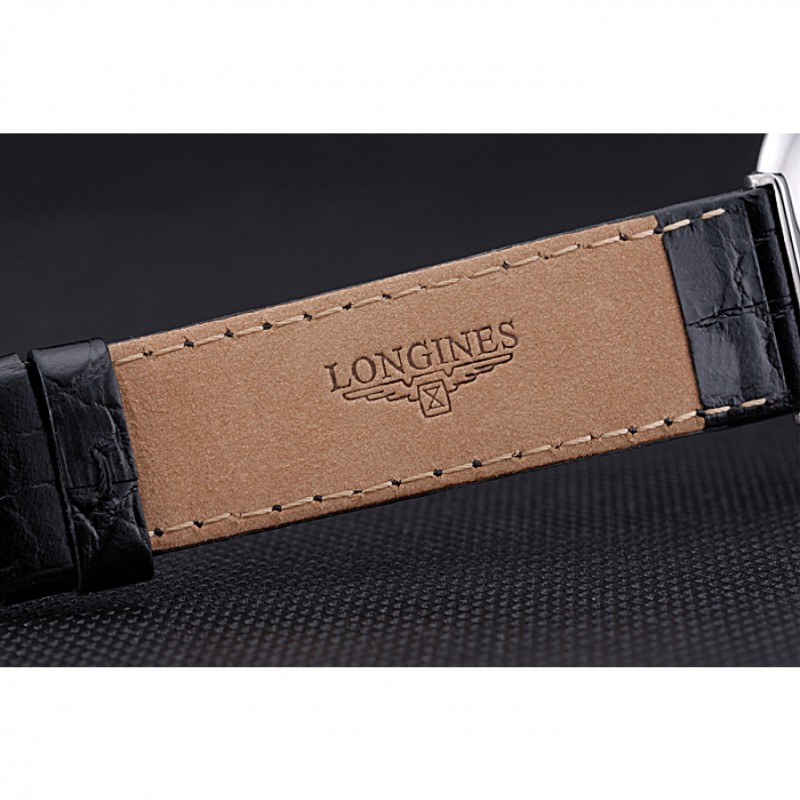 pulsera: correa de cuero calor Longines en relieve de cocodrilo negro con logo grabado pulida de acero inoxidable gancho hebilla de cierre