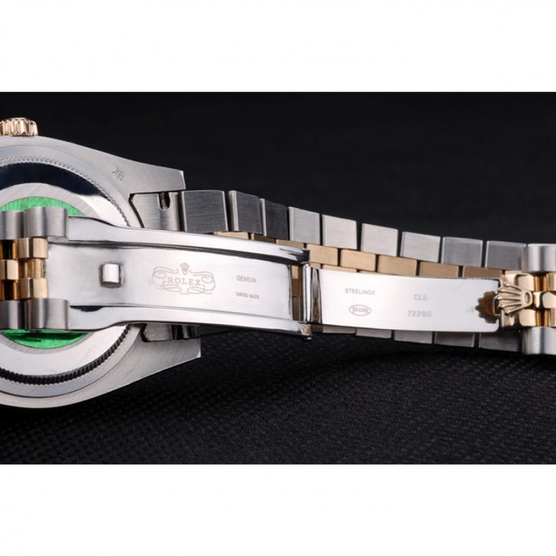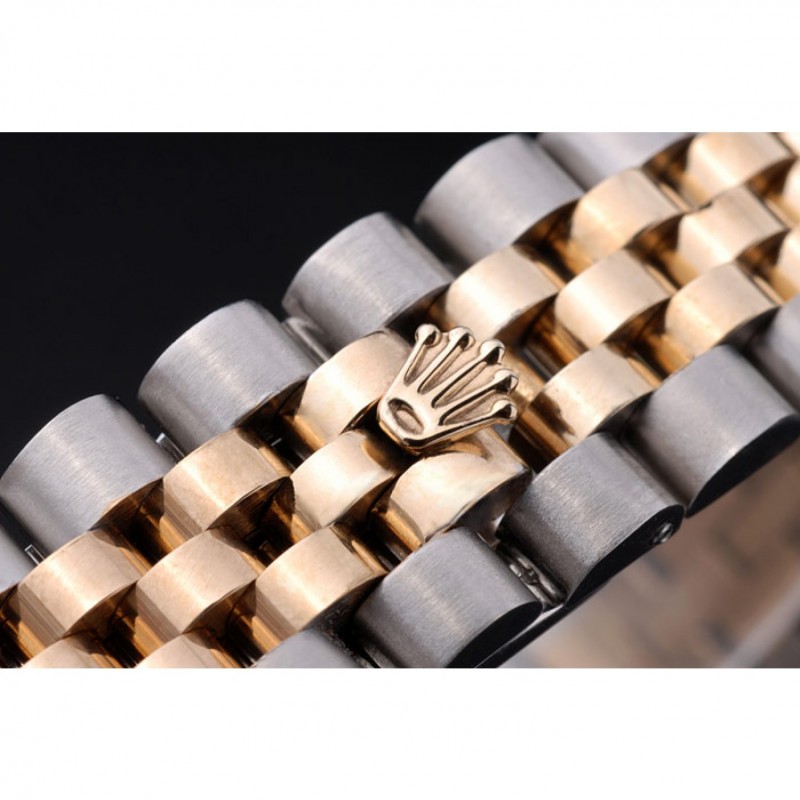 pulsera: Dos tonificado brazalete de eslabones en acero inoxidable pulido y oro amarillo de 18K chapado en acero con el grabado Rolex cierre oculto que muestra el logotipo de Rolex