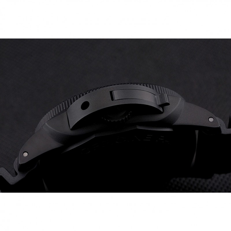pulsera: correa de caucho negro en relieve Panerai Italia calor con Panerai inscrito ion-plateado gancho hebilla de cierre