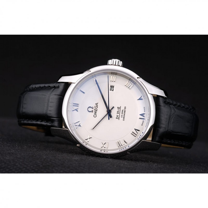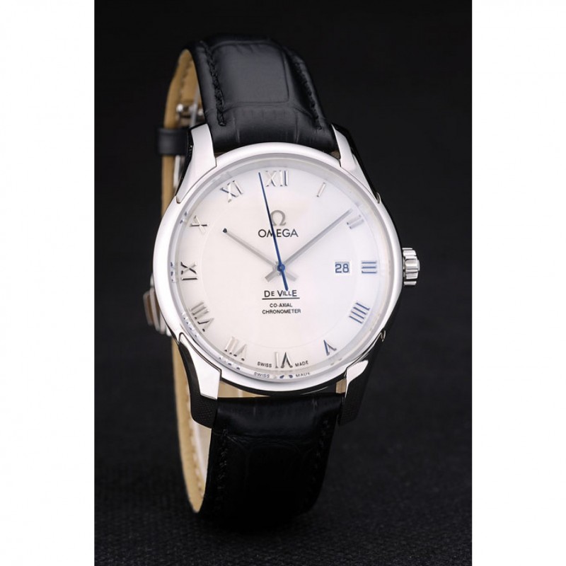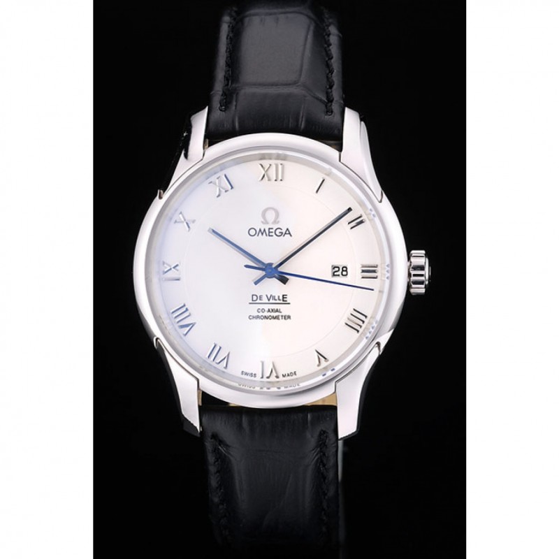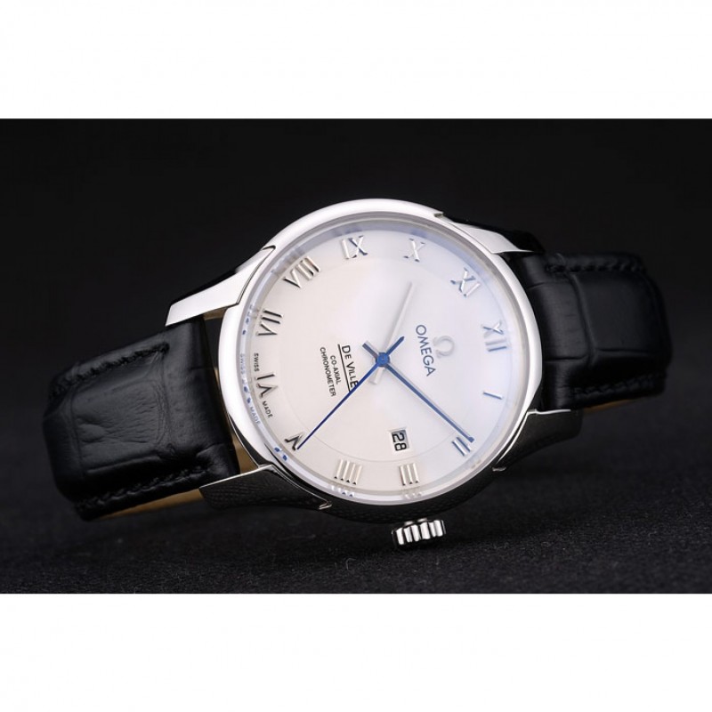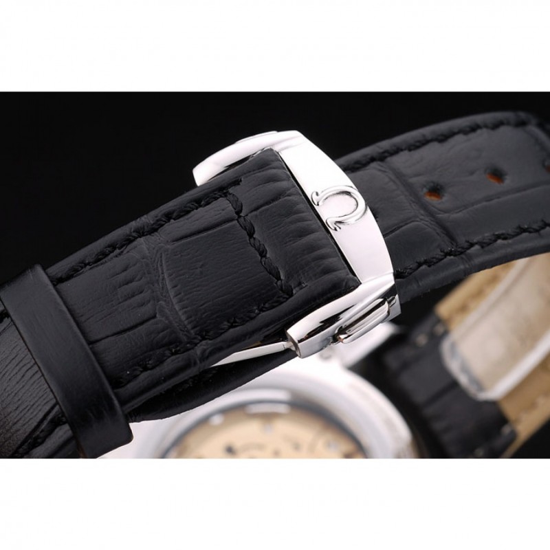 Lujo Réplicas Relojes Correa de cuero Omega DeVille suiza de acero inoxidable Bisel Negro 7620