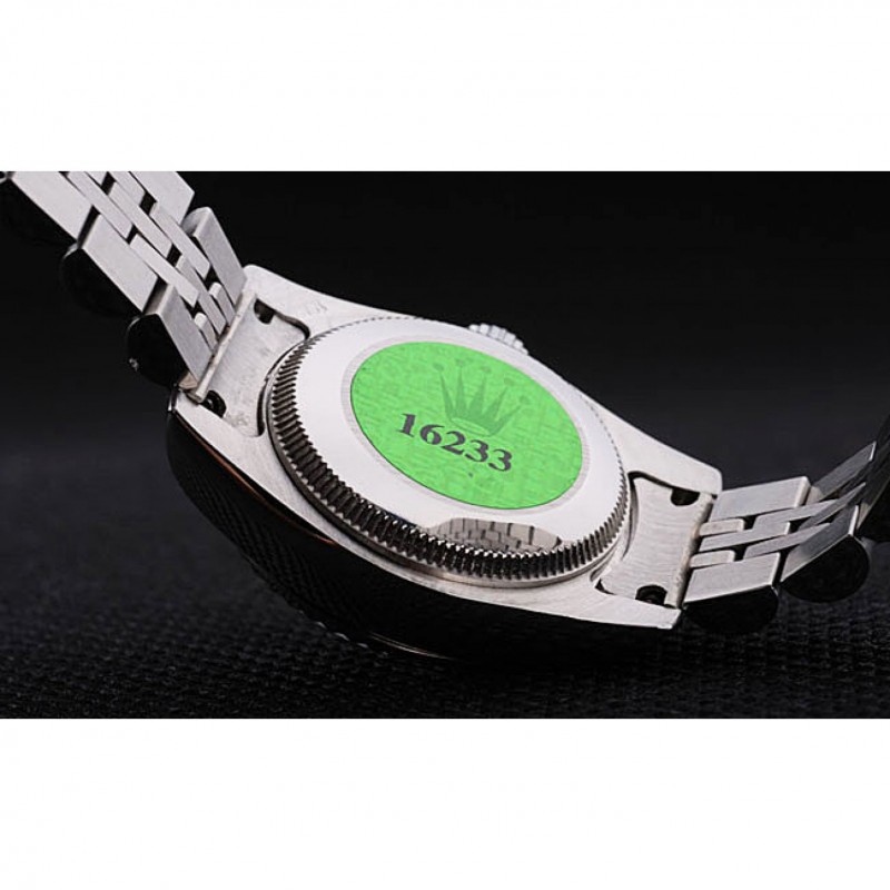 Volver: de acero inoxidable de empuje en el caso de vuelta con el logotipo verde sello Rolex