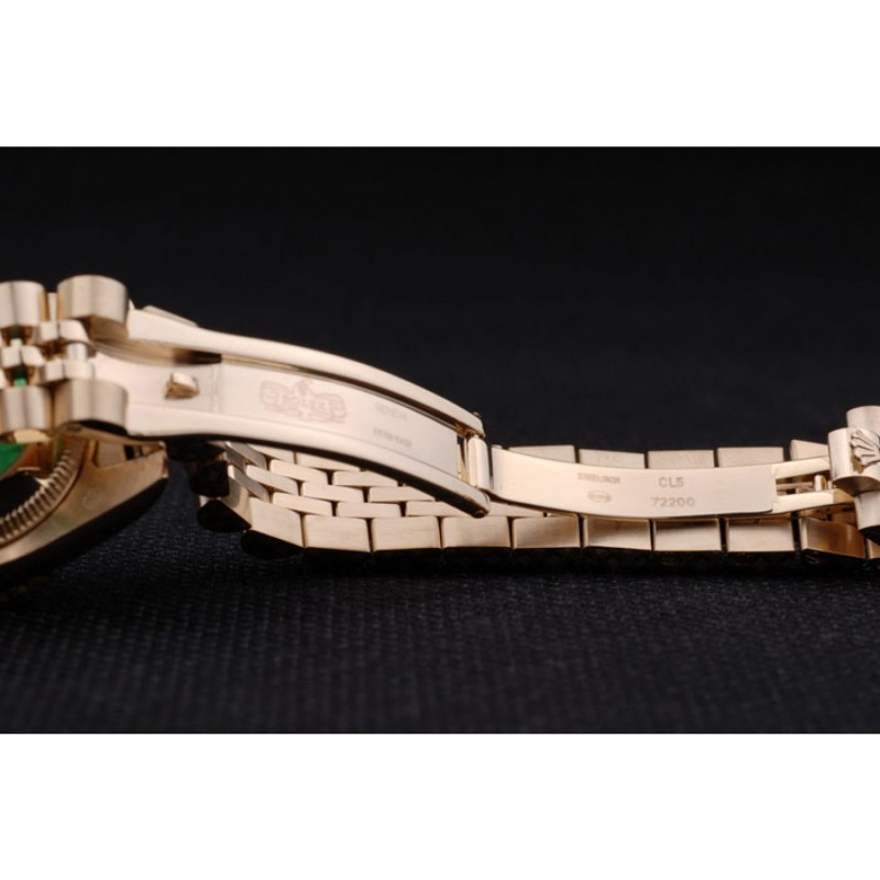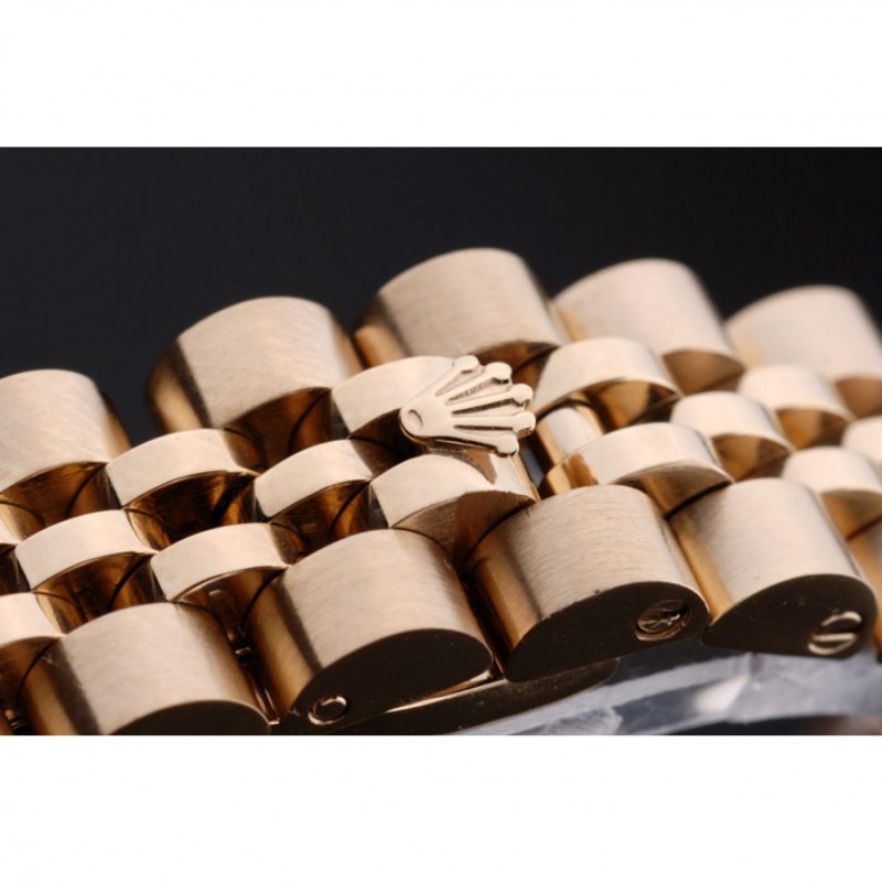 pulsera: 18k oro amarillo plateado brazalete de eslabones de acero inoxidable con grabado Rolex cierre oculto que muestra el logotipo de Rolex