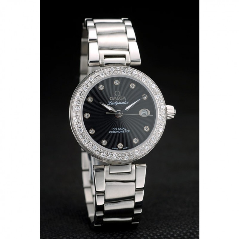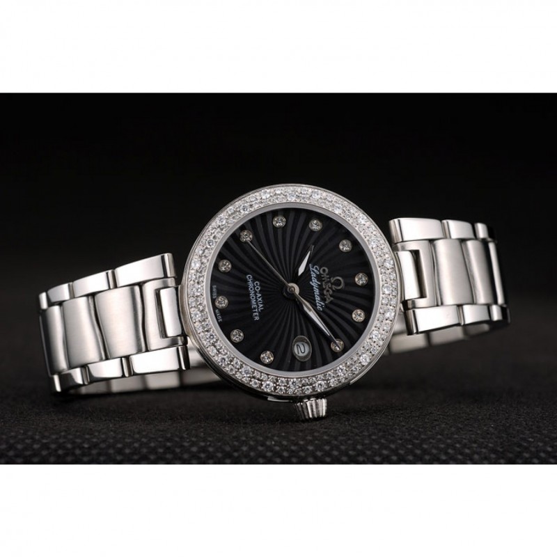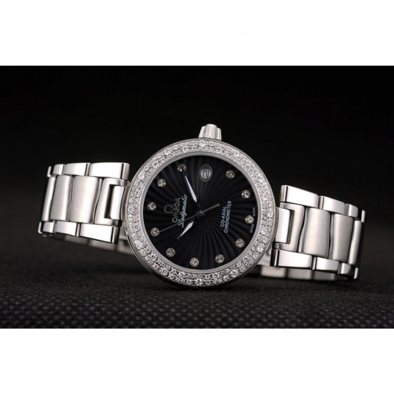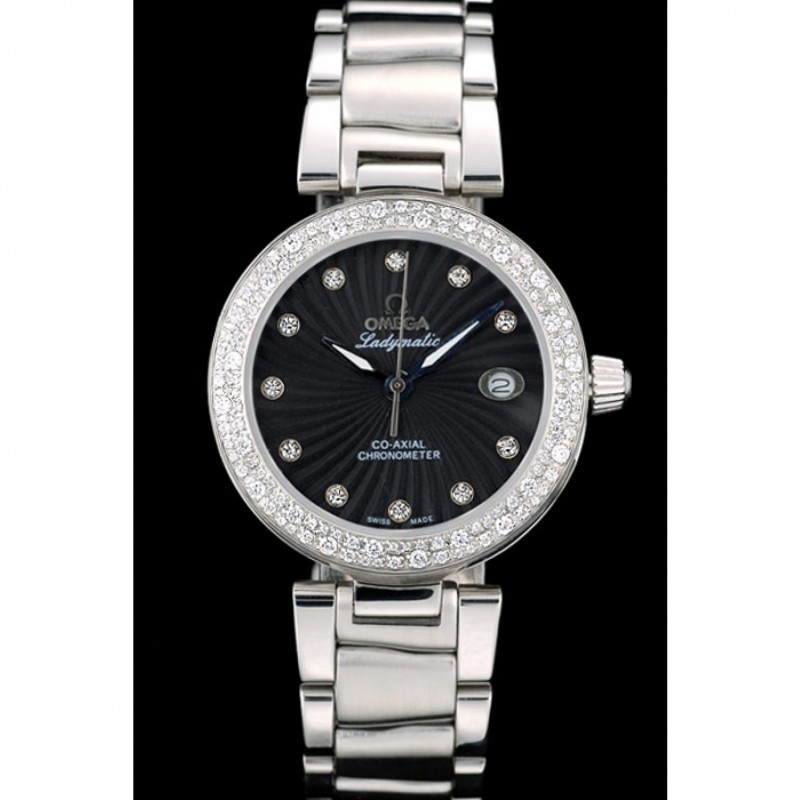 Lujo Réplicas Relojes Omega DeVille Ladymatic iamond marcación plateó la bandeja Negro