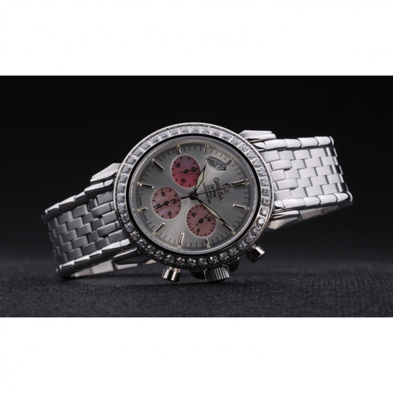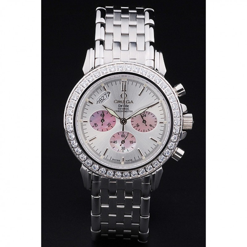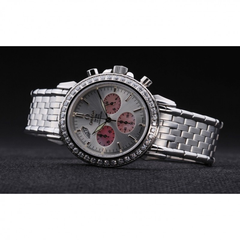 Corona: Pulido corona calado de acero inoxidable con el logotipo de Omega más dos coronas adicionales, uno a cada lado de ella