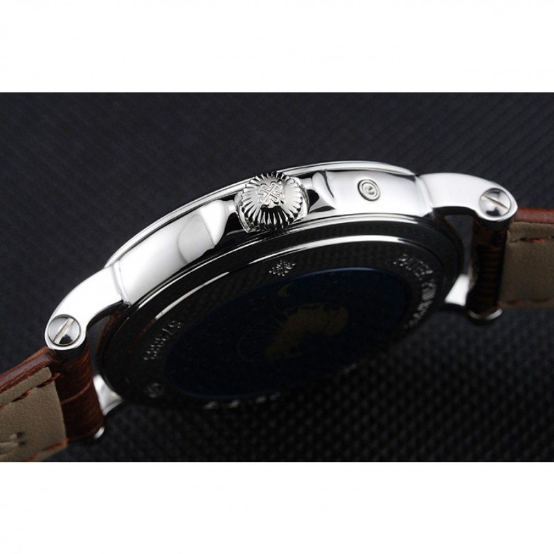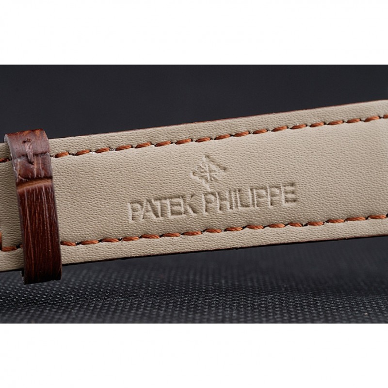 pulsera: Patek Philippe y correa de cuero de calor logotipo en relieve cocodrilo marrón con acero inoxidable pulido de gancho hebilla de cierre