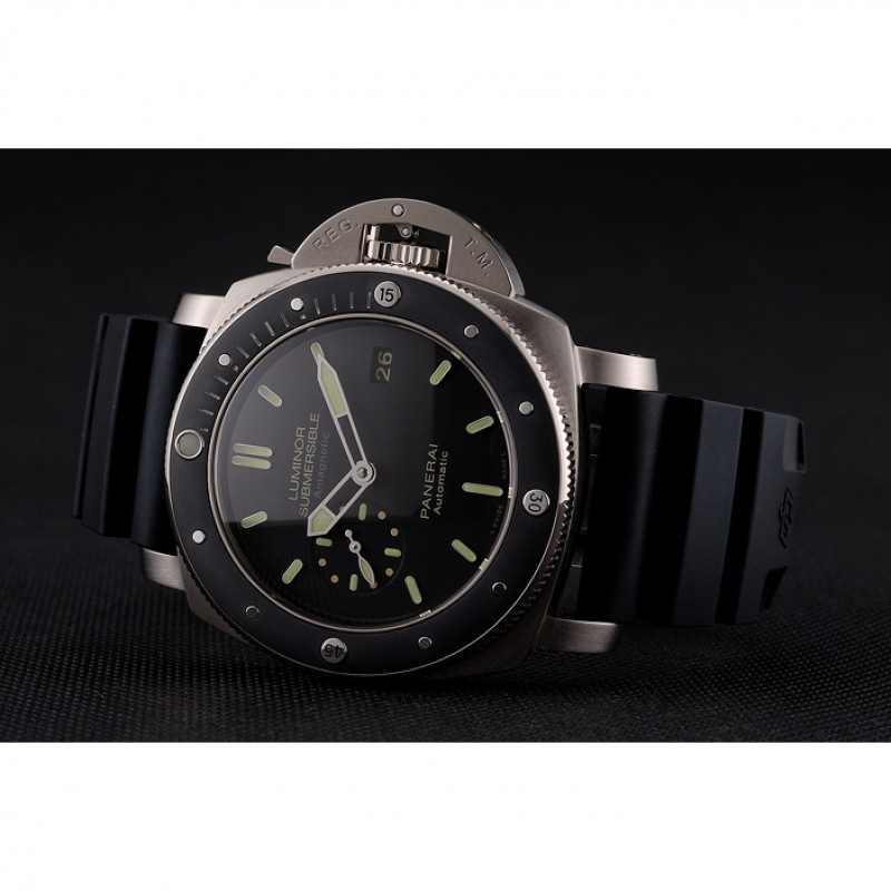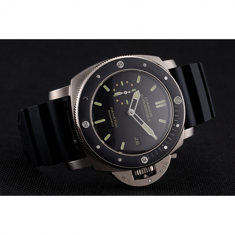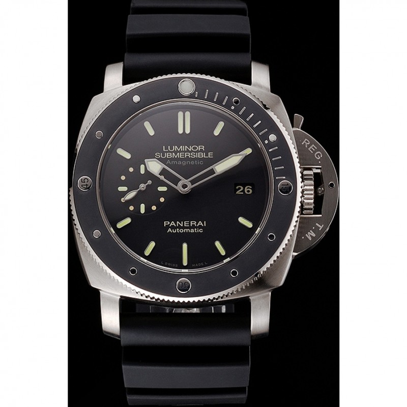 Lujo Réplicas Relojes Suiza Panerai Luminor sumergibles Negro Dial caja de acero correa de caucho Negro Negro Bisel inoxidable