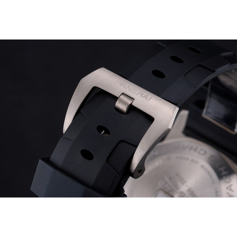pulsera: correa de caucho negro en relieve Officine Panerai Italia calor con Panerai grabado de acero inoxidable cepillado gancho hebilla de cierre