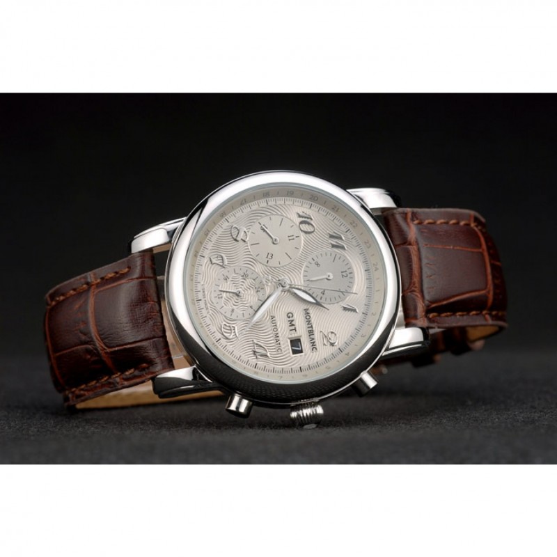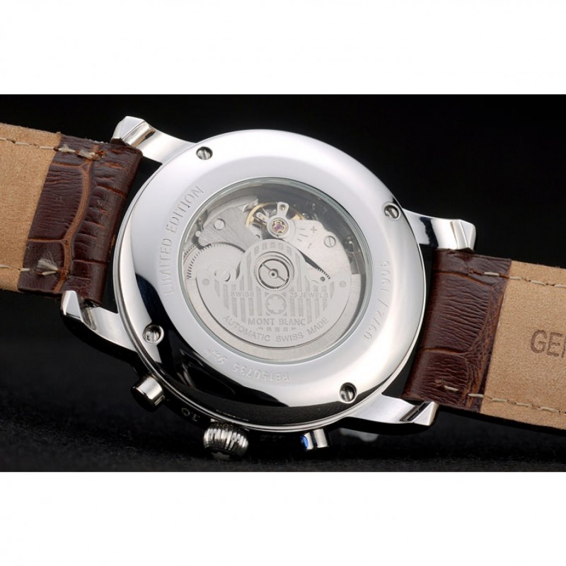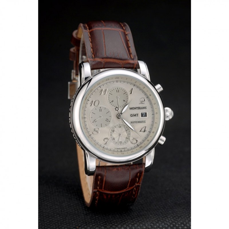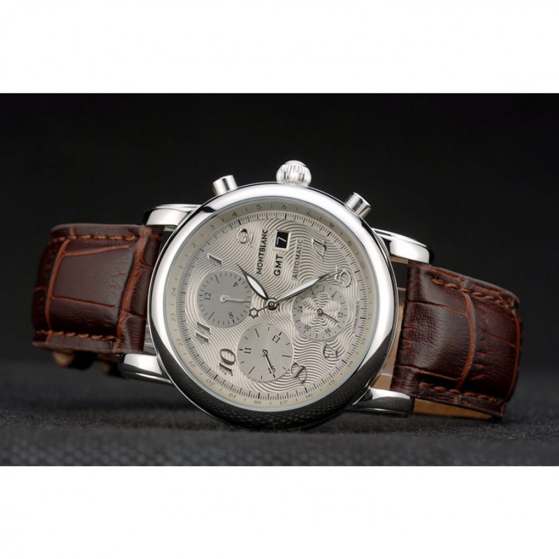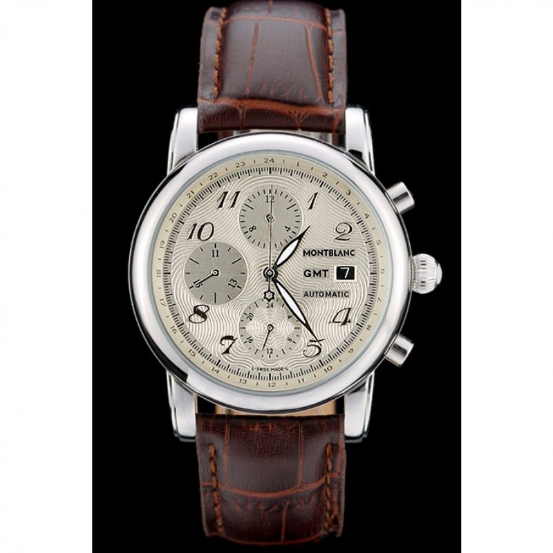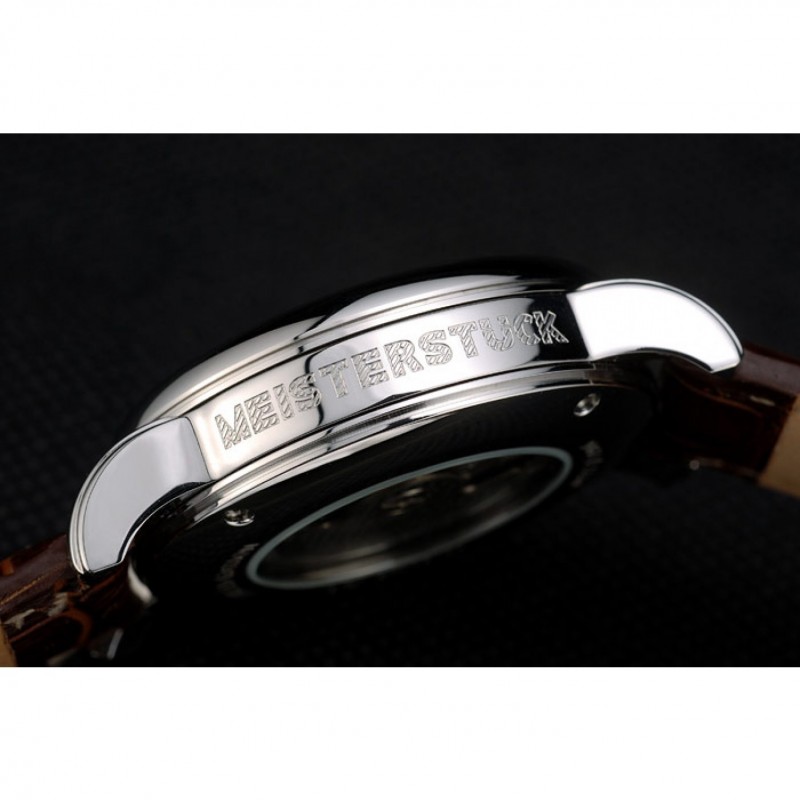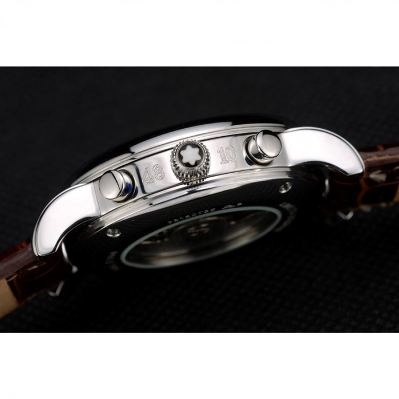 Crown: acero inoxidable pulido redondeado corona cutwork con logo MontBlanc y dos pulido de empuje de acero inoxidable coronas de botones en cada lado de ella