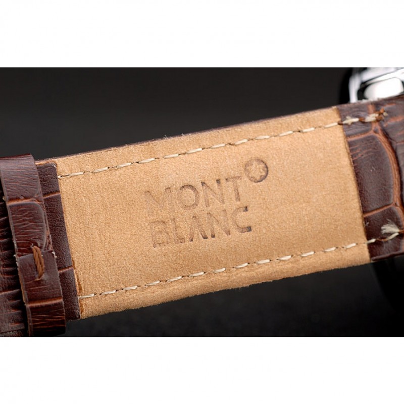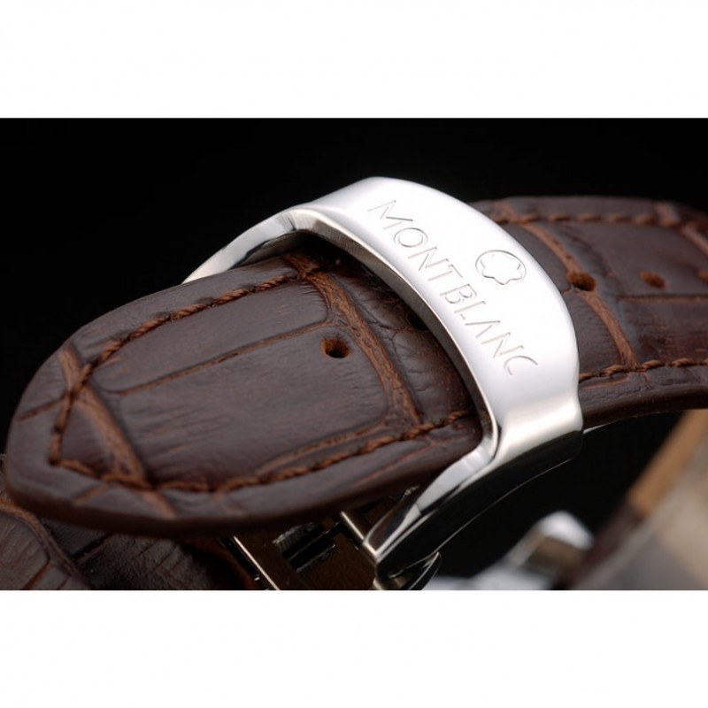 pulsera: correa de piel de cocodrilo marrón de calor MontBlanc en relieve con MontBlanc y el logotipo inscrito pulida de acero inoxidable gancho oculto broche