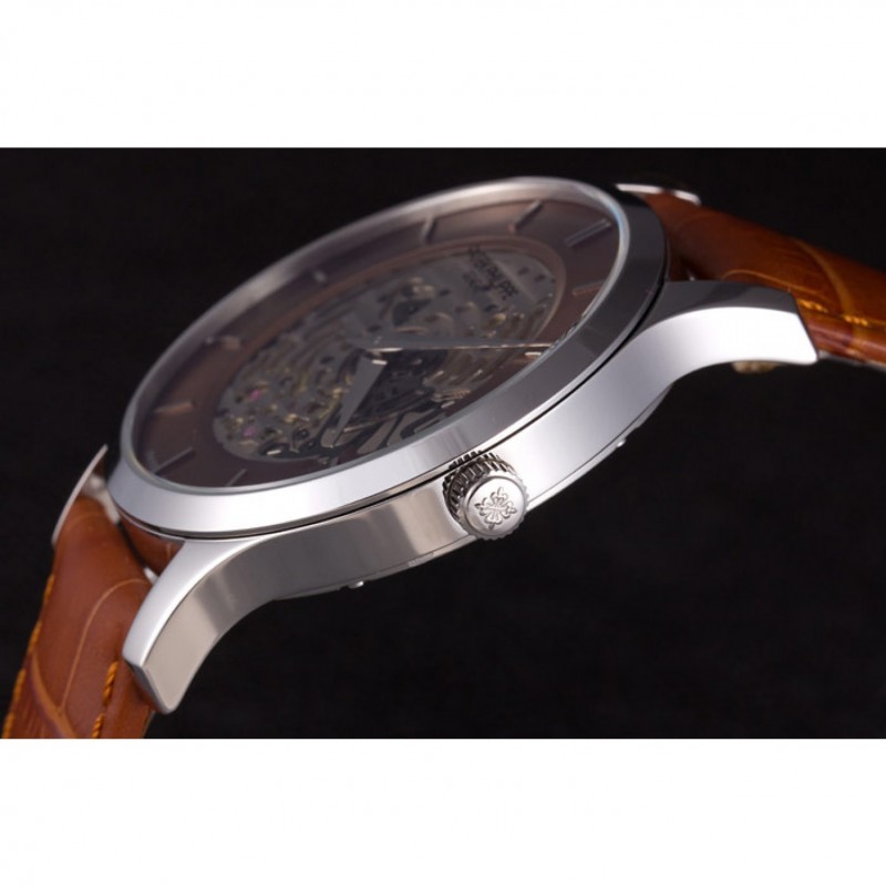 pulsera: calor Patek Philip Geneve en relieve marrón correa de piel de cocodrilo con Patek Philip grabado de acero inoxidable cepillado gancho hebilla de cierre