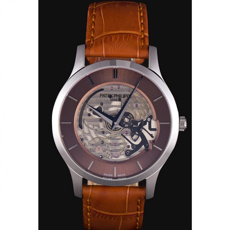 Mejor Las complicaciones Patek Philippe Brown Dial pulsera de cuero marrón