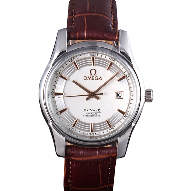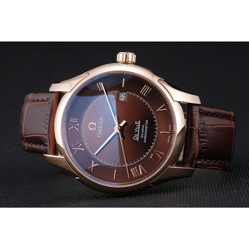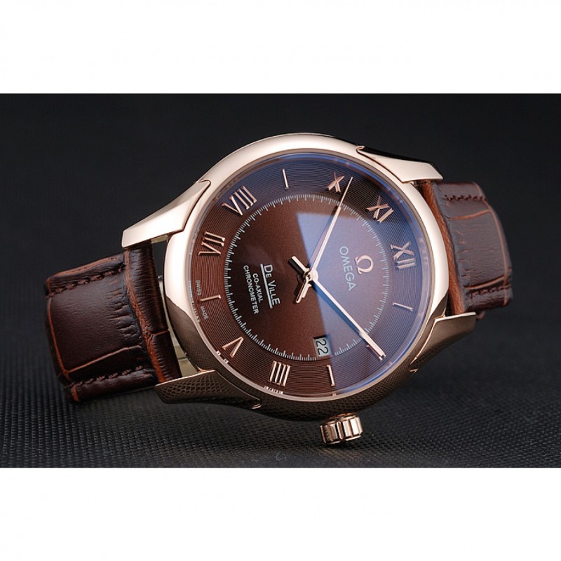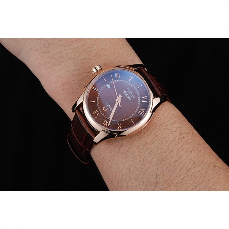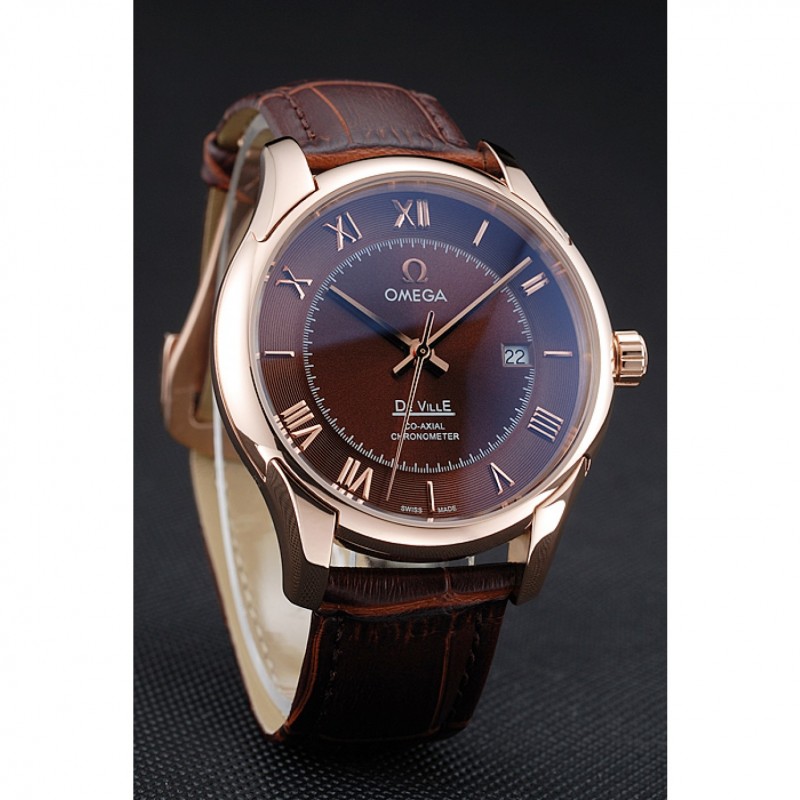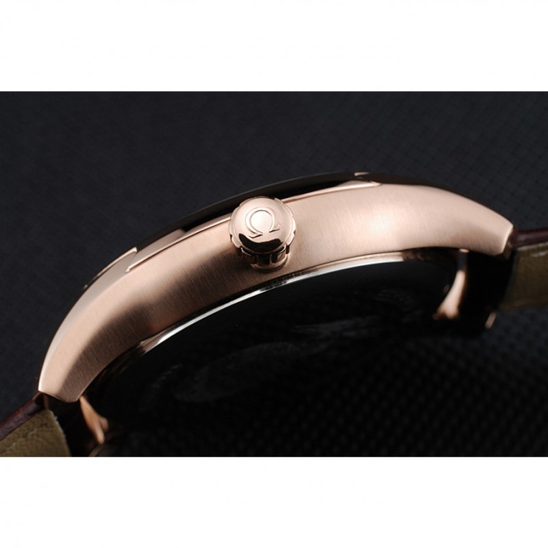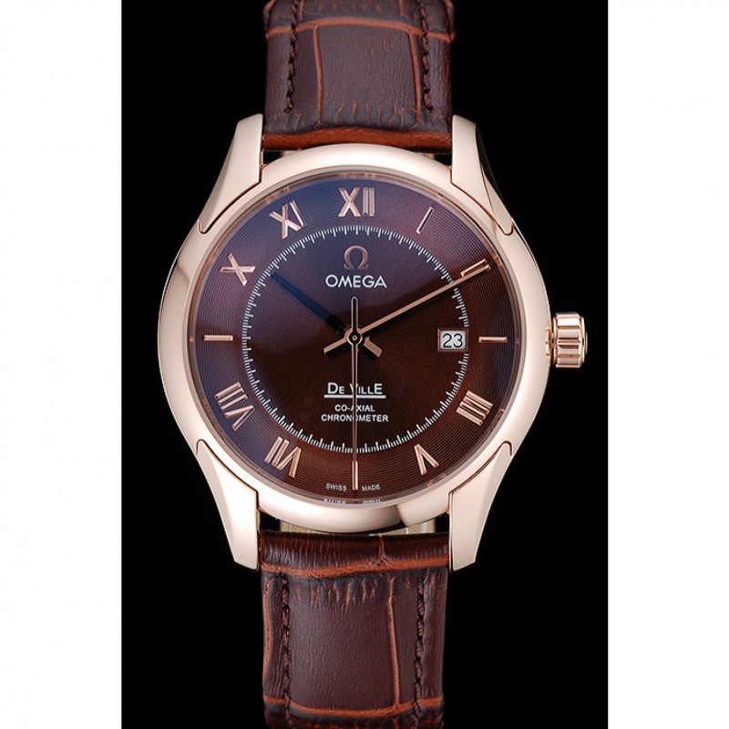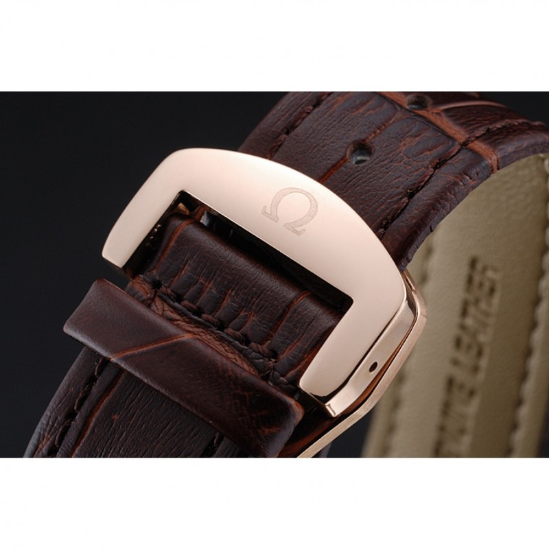 Mejor Omega DeVille Brown Dial Caja Oro Brown correa de cuero 622831