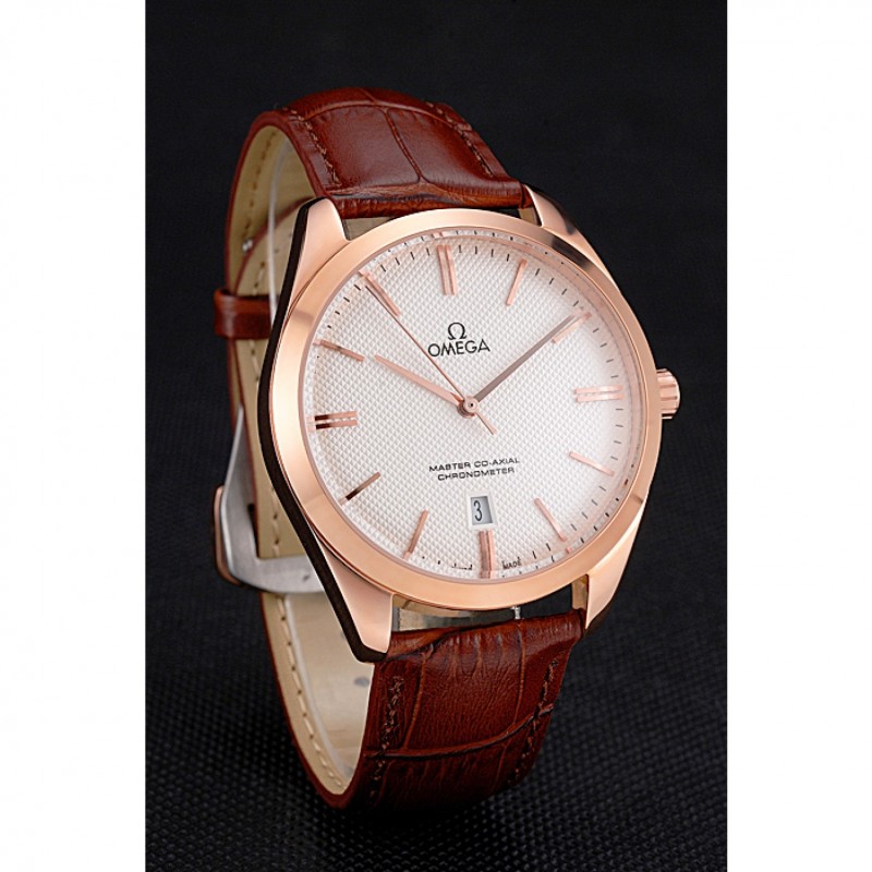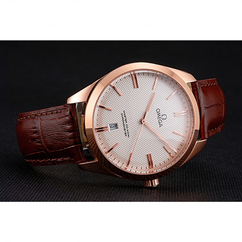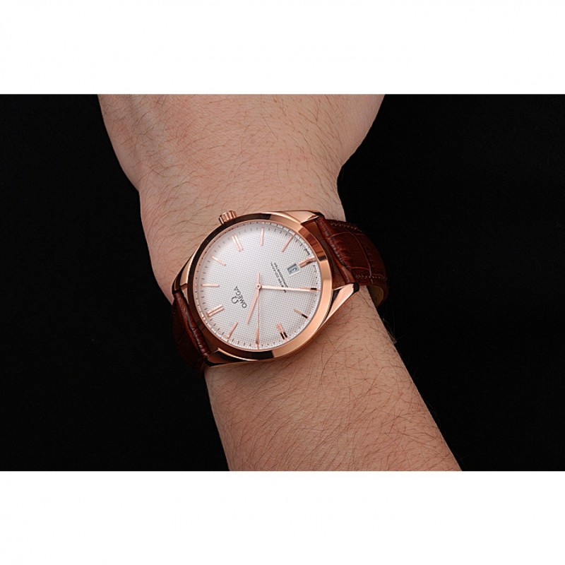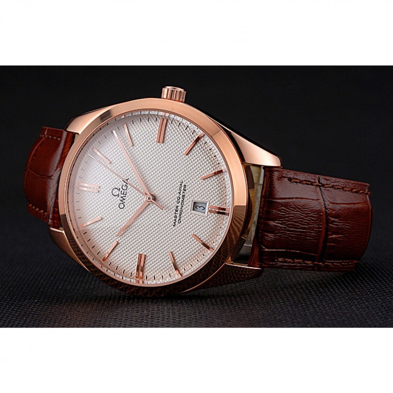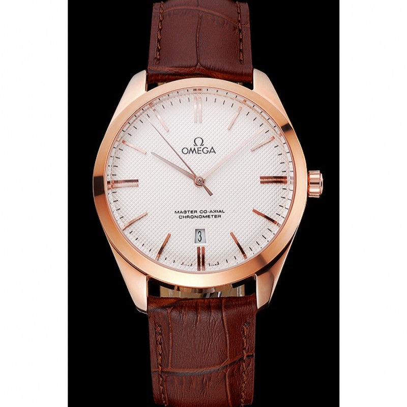 Mejor Omega Tresor Maestro Co-Axial Blanco Dial correa de cuero de la caja de oro rosa Brown