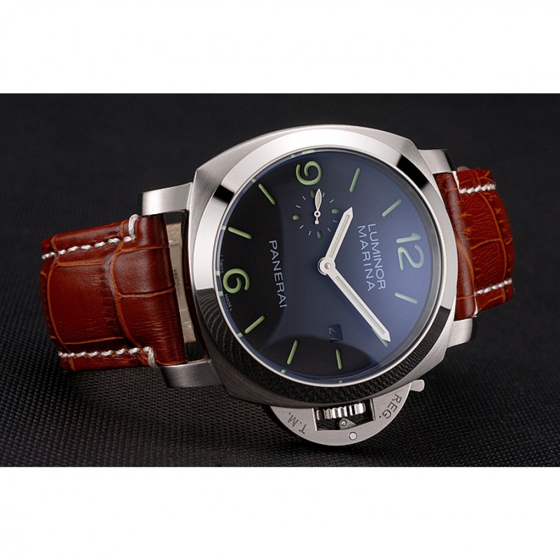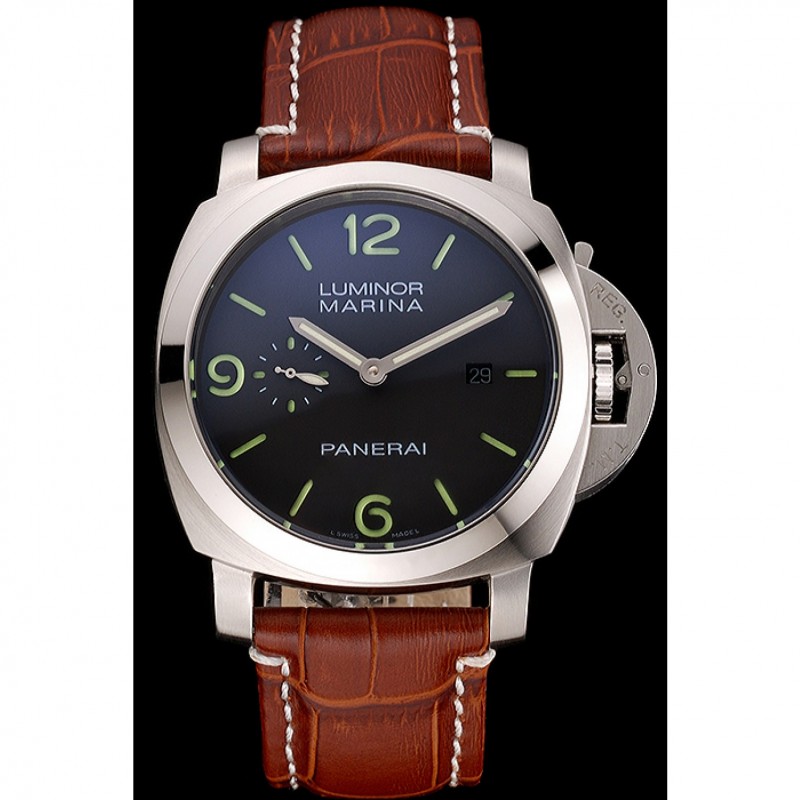 Mejor Panerai Luminor Marina 1950 Dial Negro correa de cuero de la caja de acero cepillado marrón claro