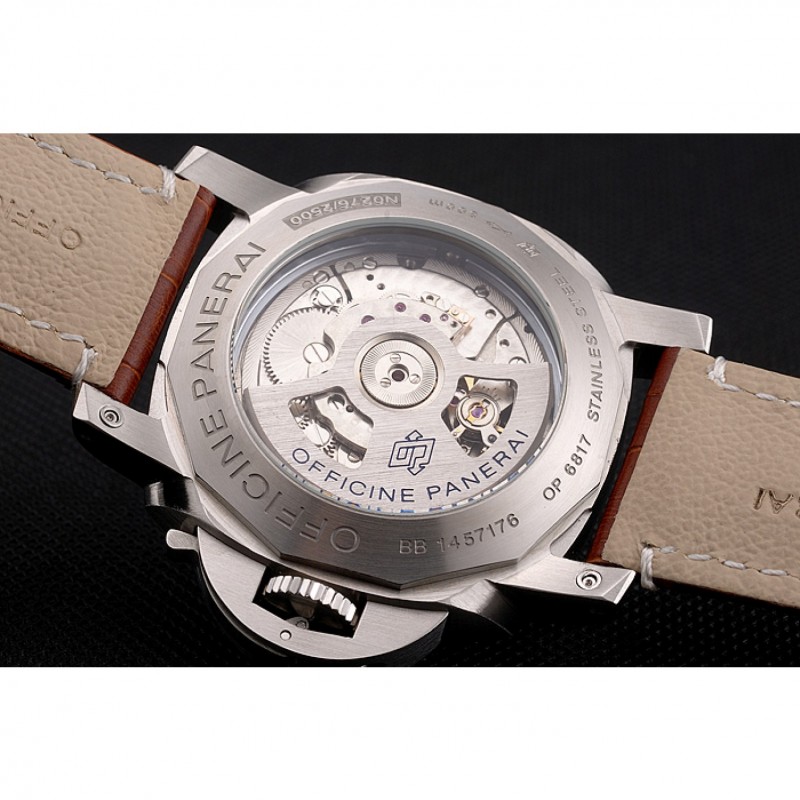 Volver: de acero inoxidable cepillado complemento de nuevo con la mecánica transparentes revelando centro y grabados Panerai
