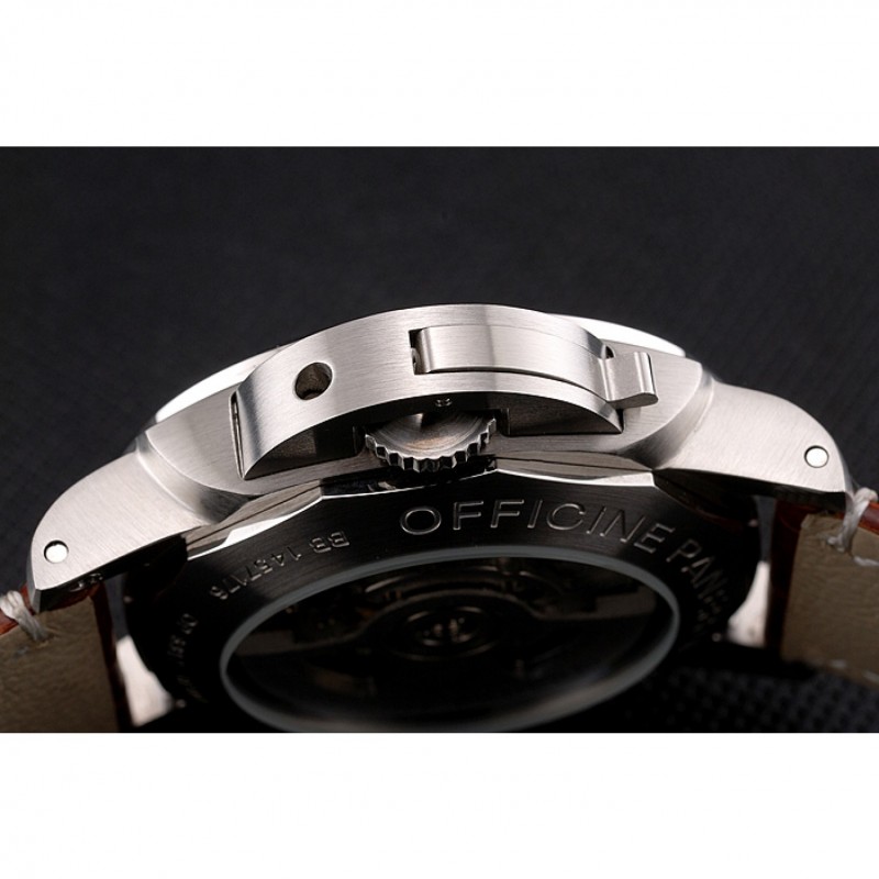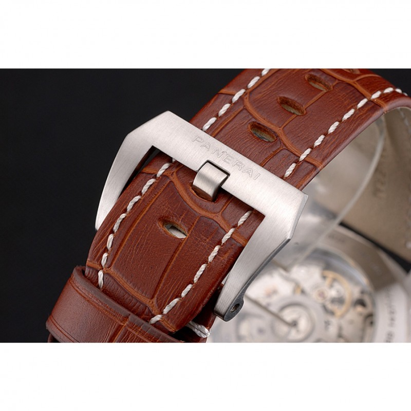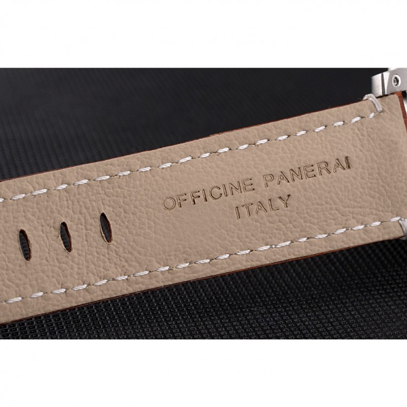 pulsera/: Officine Panerai Italia calor correa de piel de cocodrilo marrón estampada con costuras de hilo blanco y Panerai grabado de acero inoxidable cepillado gancho hebilla de cierre