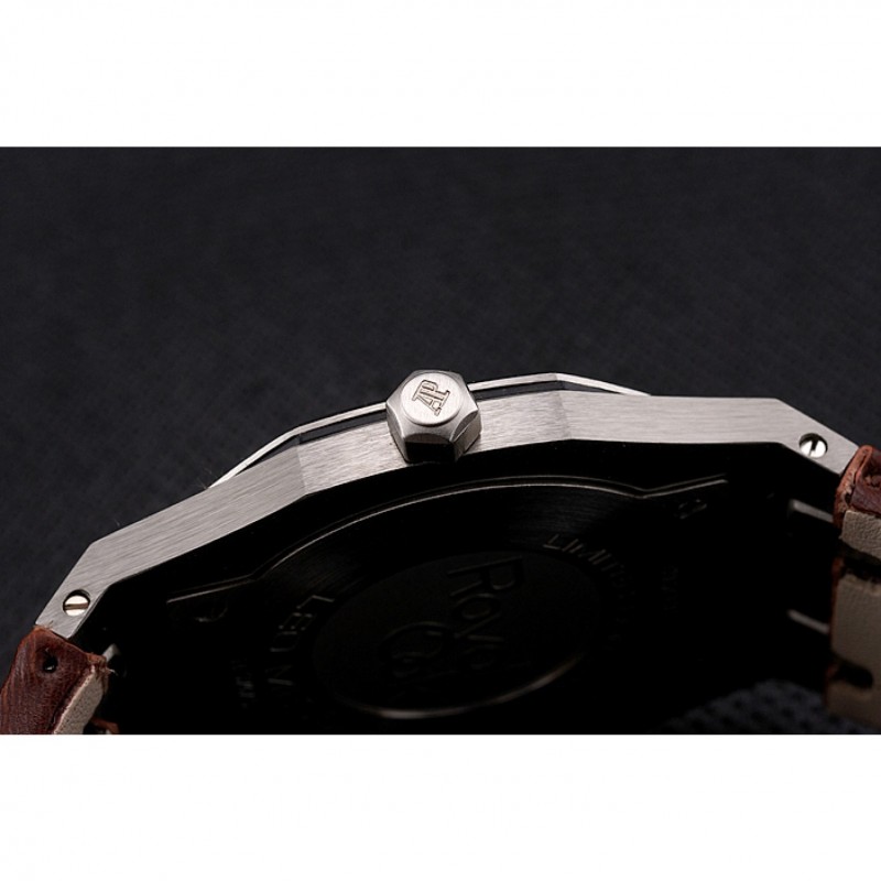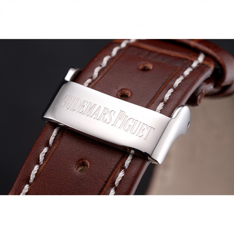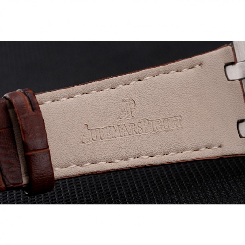 pulsera: logo y Audemars Piguet calor correa de piel de cocodrilo marrón en relieve con la costura de hilo blanco y Audemars Piguet grabado de acero inoxidable pulido plegable en cierre de broche de gancho