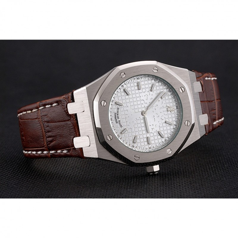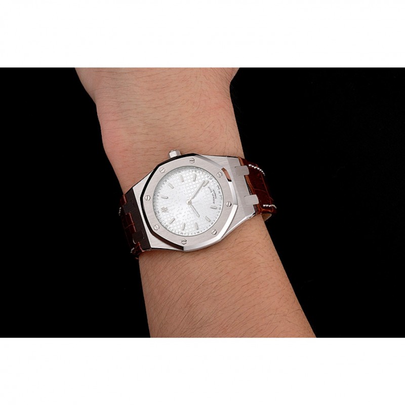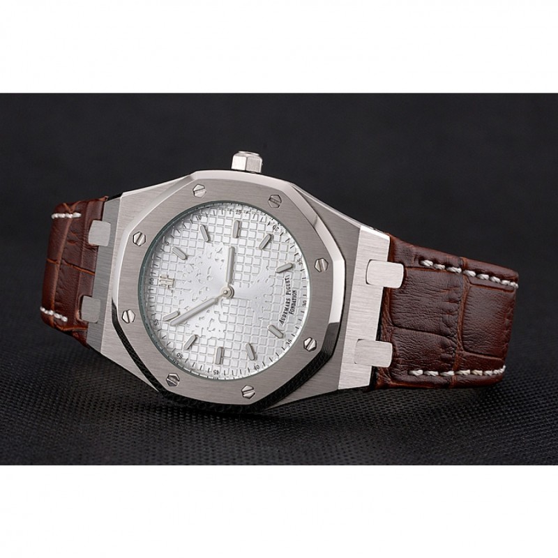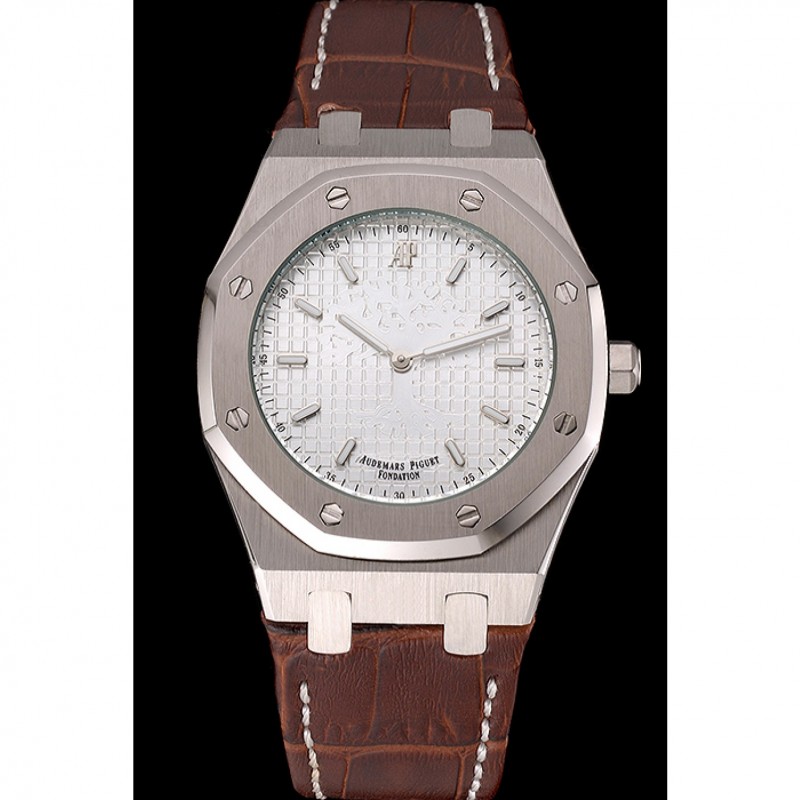 Mejor Réplicas Relojes Audemars Piguet Royal Oak Fondation Blanco Dial correa de cuero caja de acero inoxidable de Brown