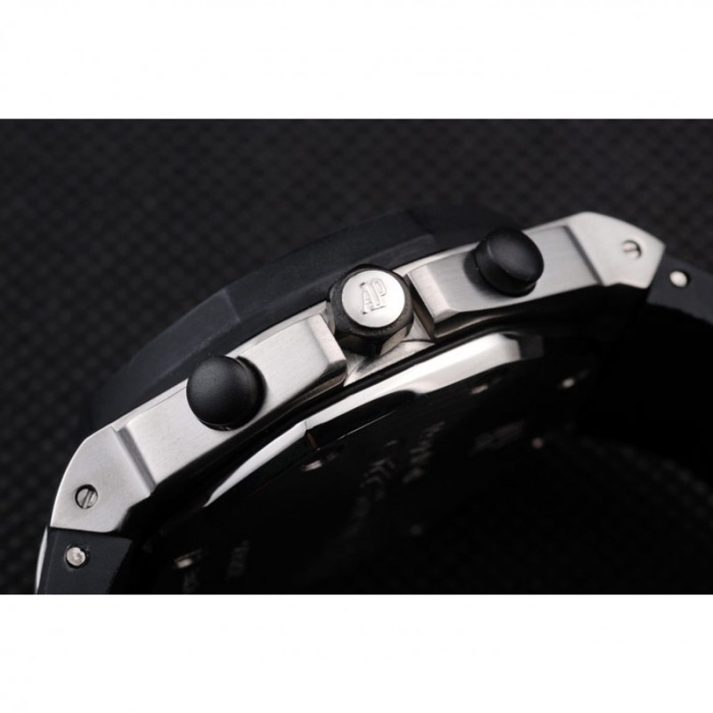 Corona: logo Audemars Piguet grabado ion-plateado corona hexagonal con una pequeña ronda pulsador corona en cada lado de ella