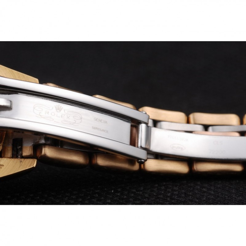pulsera: Dos tonos brazalete de eslabones de fantasía en rosa de 18 quilates chapado en oro de acero inoxidable y acero inoxidable pulido con el grabado Rolex cierre oculto que muestra el logotipo de Rolex