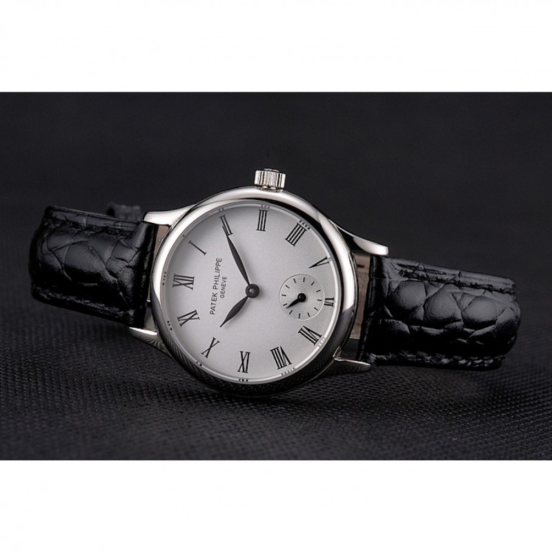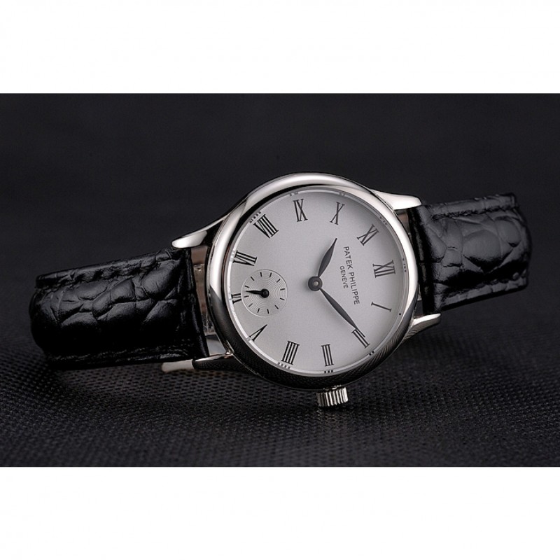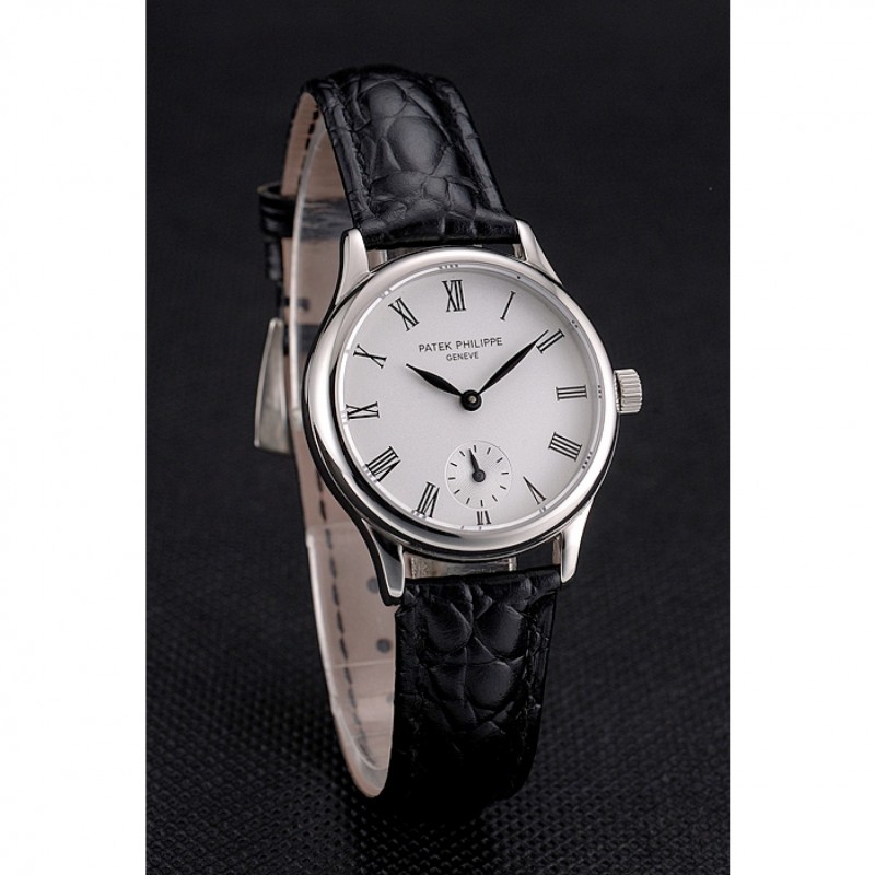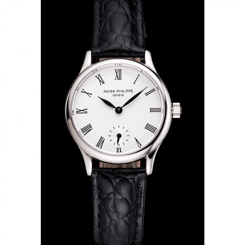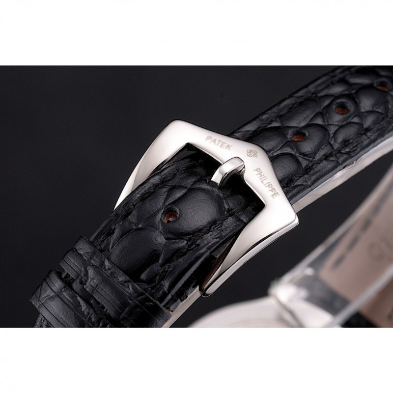 Mejor Réplicas Relojes Patek Philippe Blanco Dial correa de cuero de los números romanos caja de acero inoxidable Negro