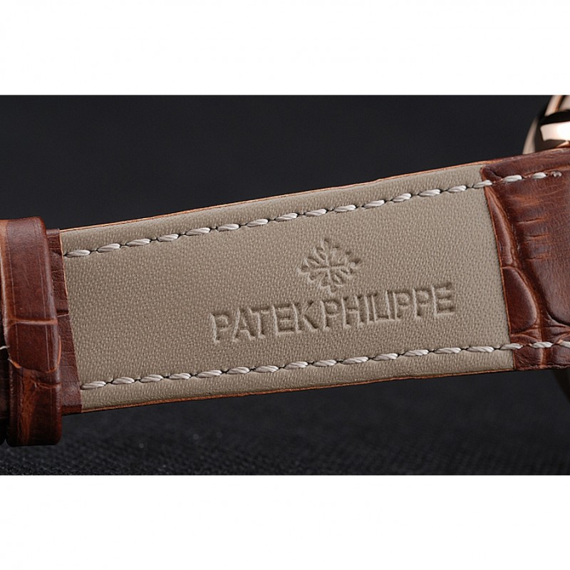 pulsera: calor Patek Philippe Geneve en relieve correa de piel de cocodrilo marrón con logotipo y Patek Philippe inscrito rosa de 18 quilates chapado en oro gancho hebilla de cierre