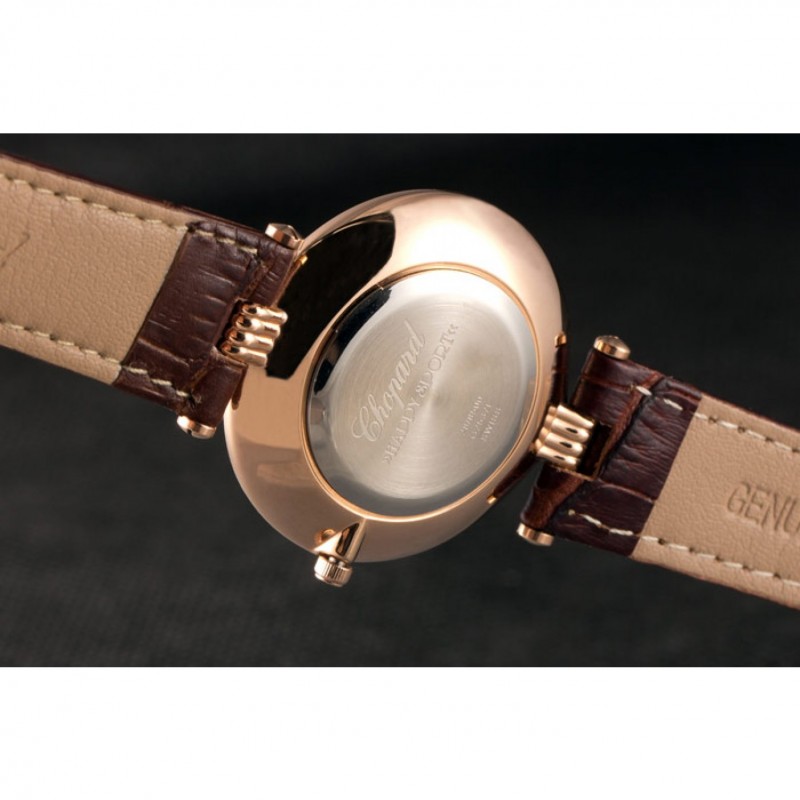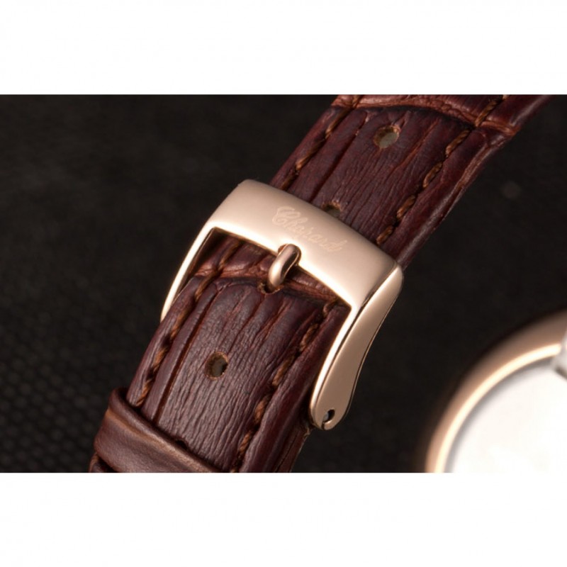 pulsera: correa de piel de cocodrilo marrón en relieve calor Chopard con Chopard grabado 18K rose-chapado en oro de gancho hebilla de cierre
