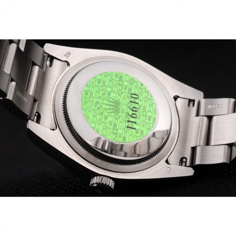Volver: de acero inoxidable de empuje en el caso de vuelta con el logotipo verde sello Rolex